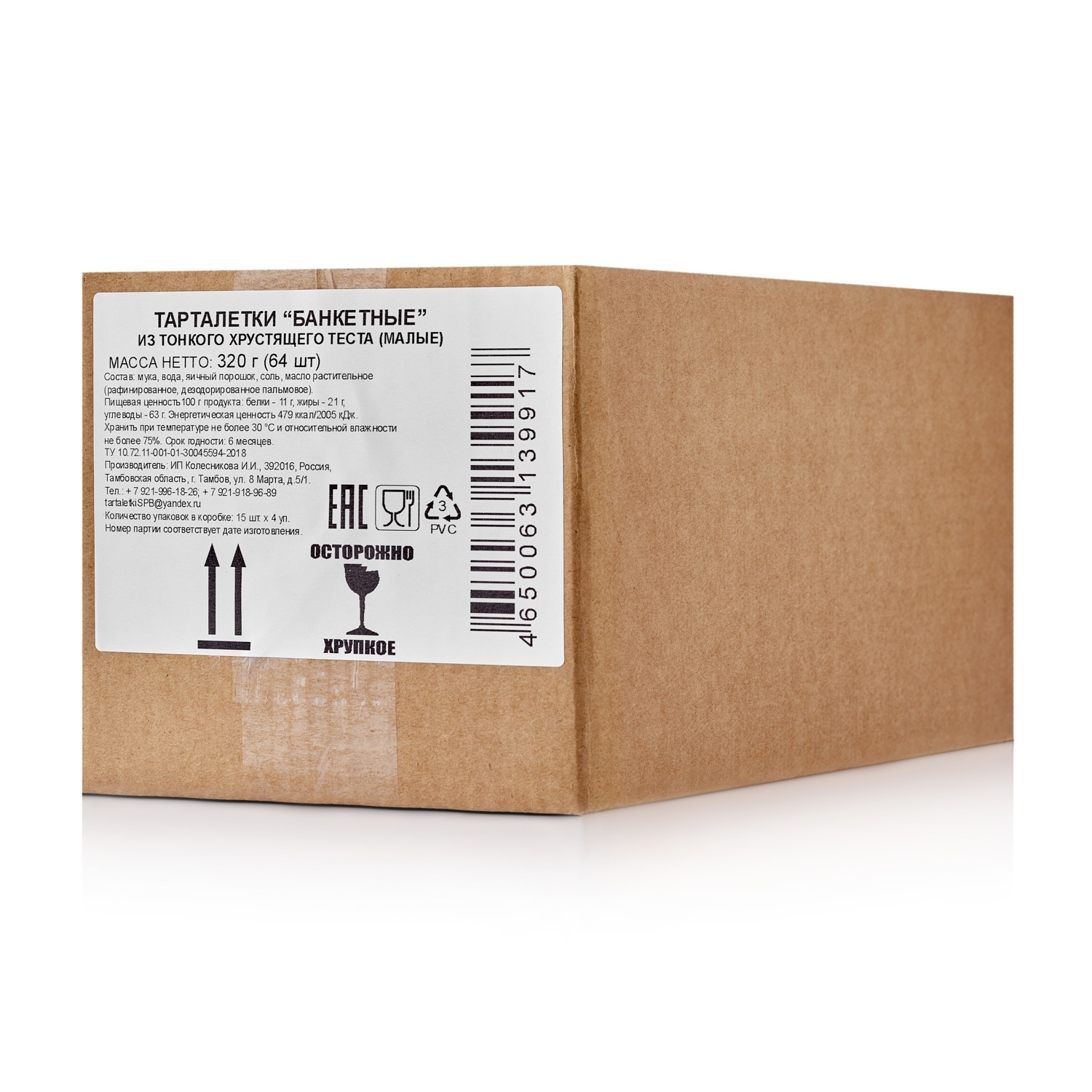 Условия хранения:хранить в сухих помещениях при отностительной влажности не более 75% и температуре не более 30ССостав:мука, вода, соль, яичный порошок, масло растительноеКомплектация:4 пачки по 16шт.Описание:Тарталетки Малые из тонкого хрустящего теста,