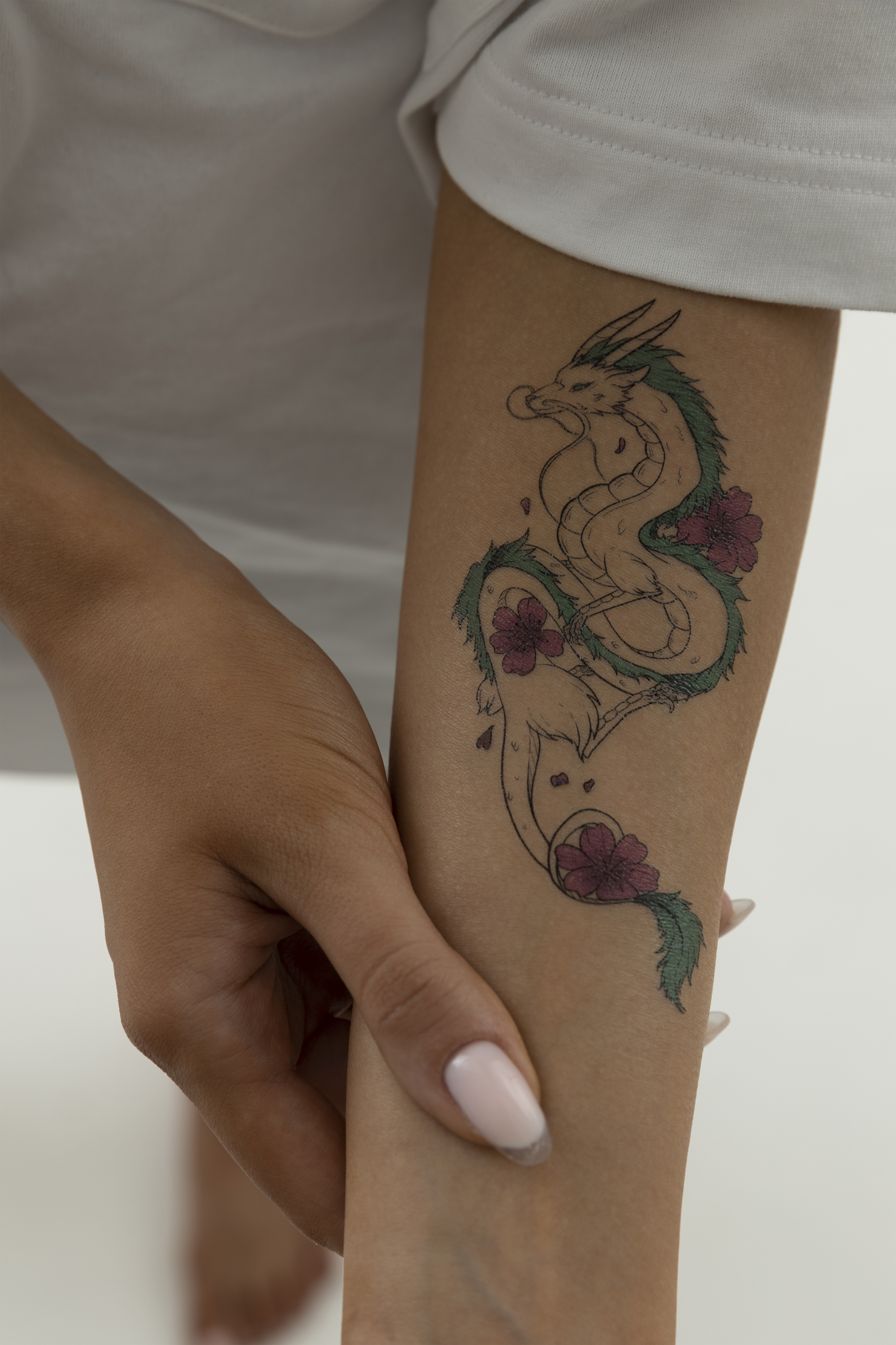 Способ применения1. Избавьтесь от волос в месте нанесения 2. Обезжирьте кожу спиртовой салфеткой 3. Вырежьте тату и снимите с нее прозрачный защитный слой 4. Приложите тату к сухой и чистой коже 5. Аккуратно намочите тату 6. Когда бумага полностью намокнет, аккуратно сним