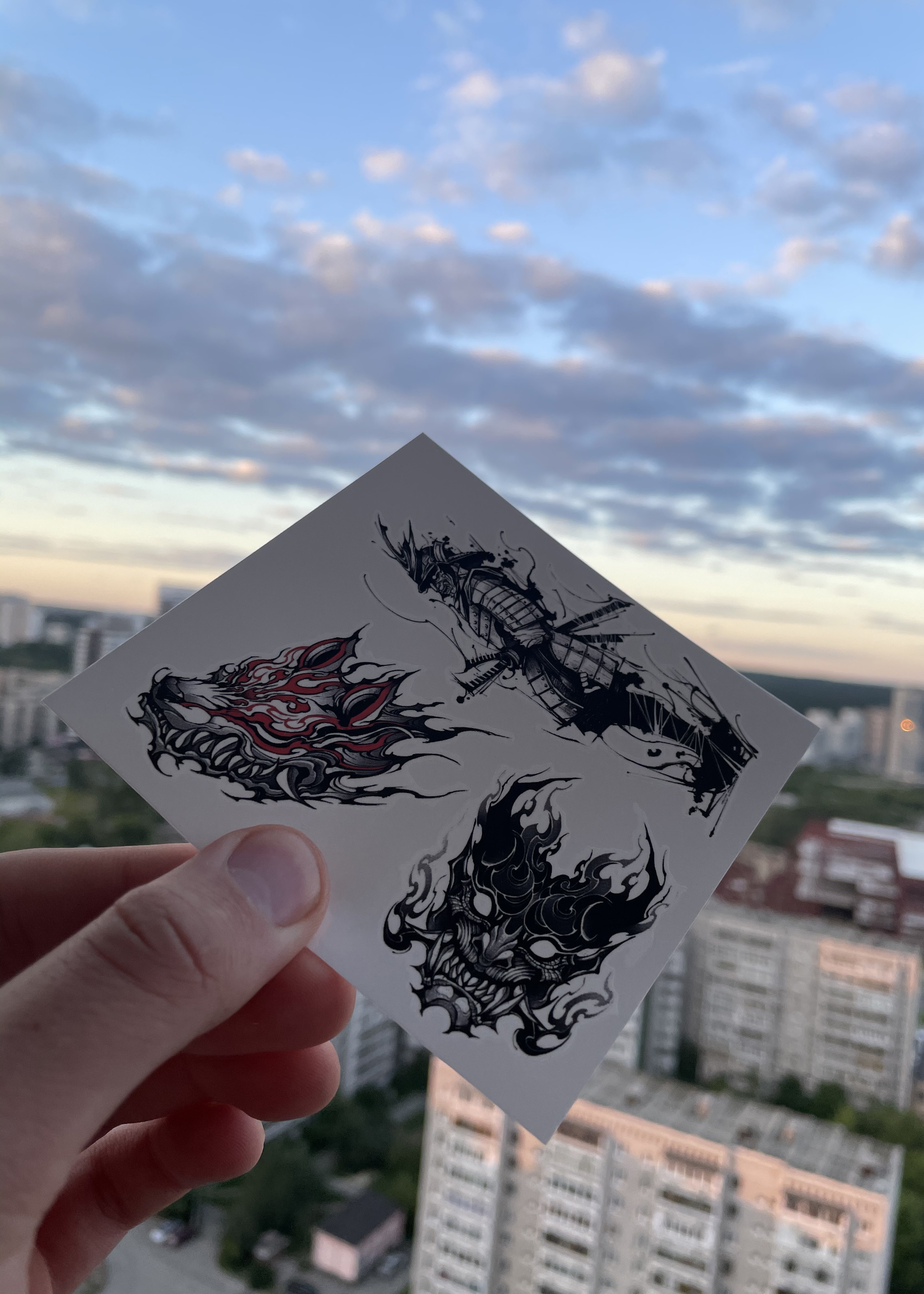 Временные тату от TATTS не боятся воды! Их сложно отличить от настоящих.Каждая тату держится на теле от 3 до 10 дней. Размер набора тату 10 на 10см.Мы используем соевые краски, поэтому наши тату:реалистично смотрятсяне вызывают раздражений и аллергиине ли