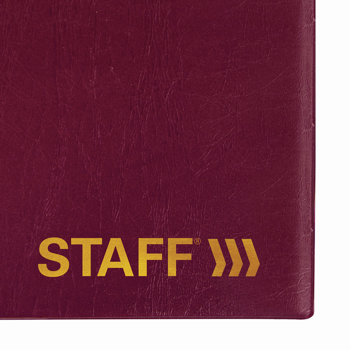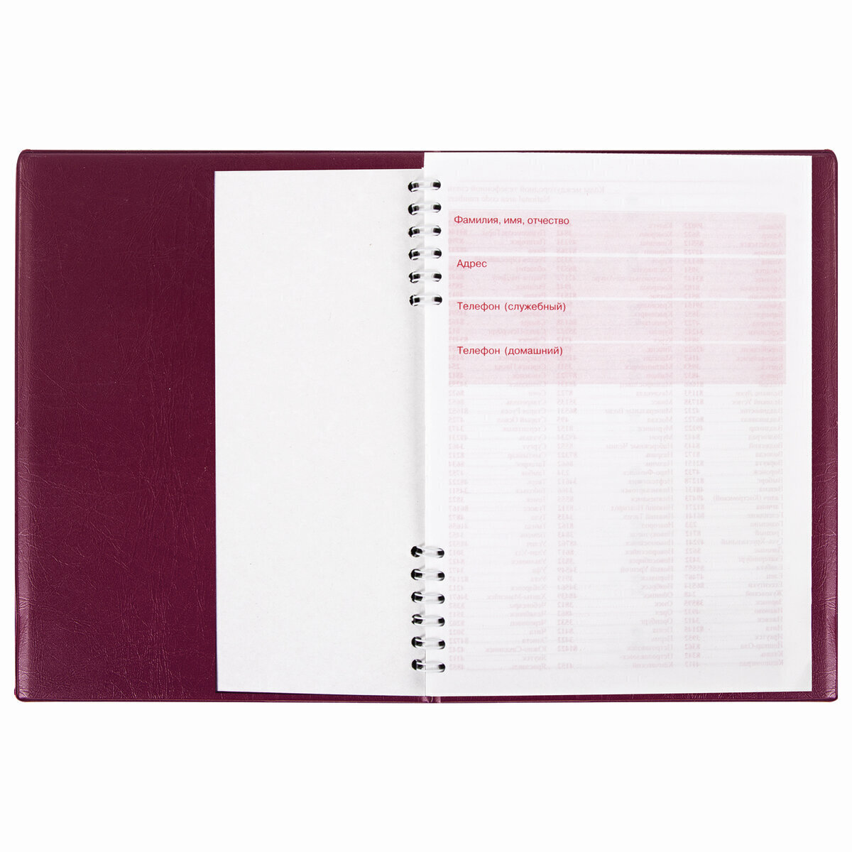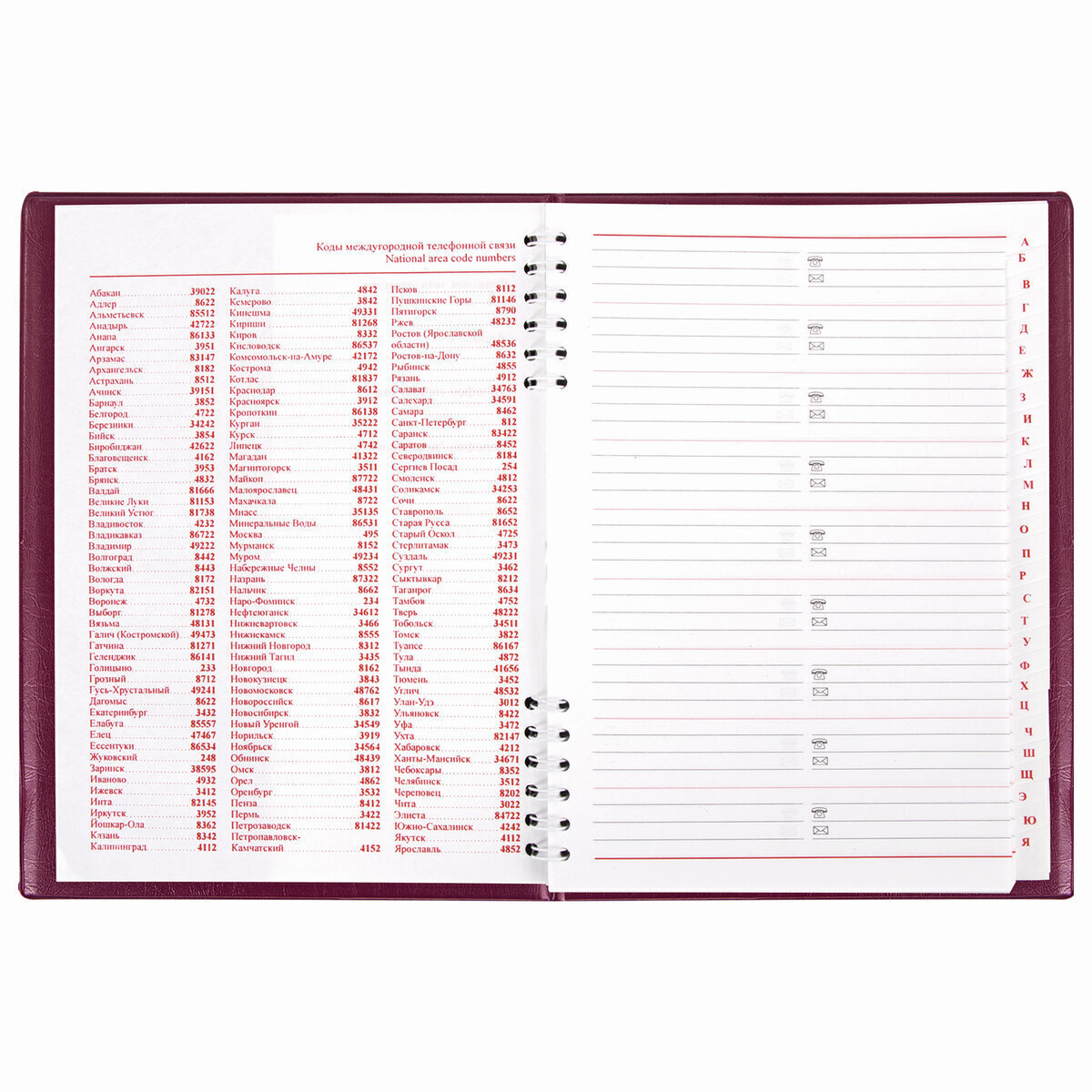 Телефонная книжка с вырубным алфавитом выполнена в строгом деловом стиле. Содержит 80 листов офсетной бумаги в клетку плотностью 65 г/м2. Обложка выполнена из ПВХ, надежно защищающего листы от повреждения. Внутренний блок крепится к обложке с помощью евро