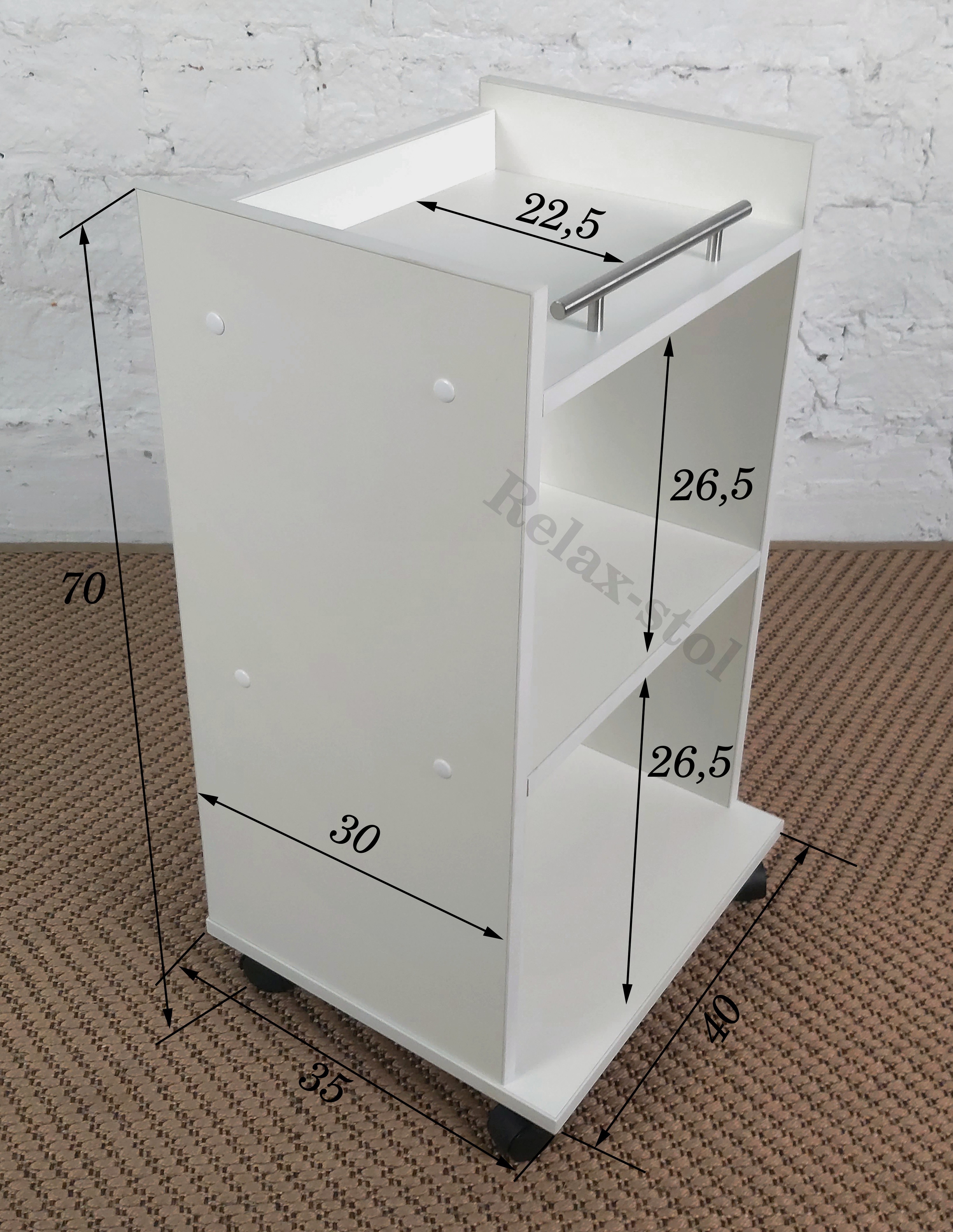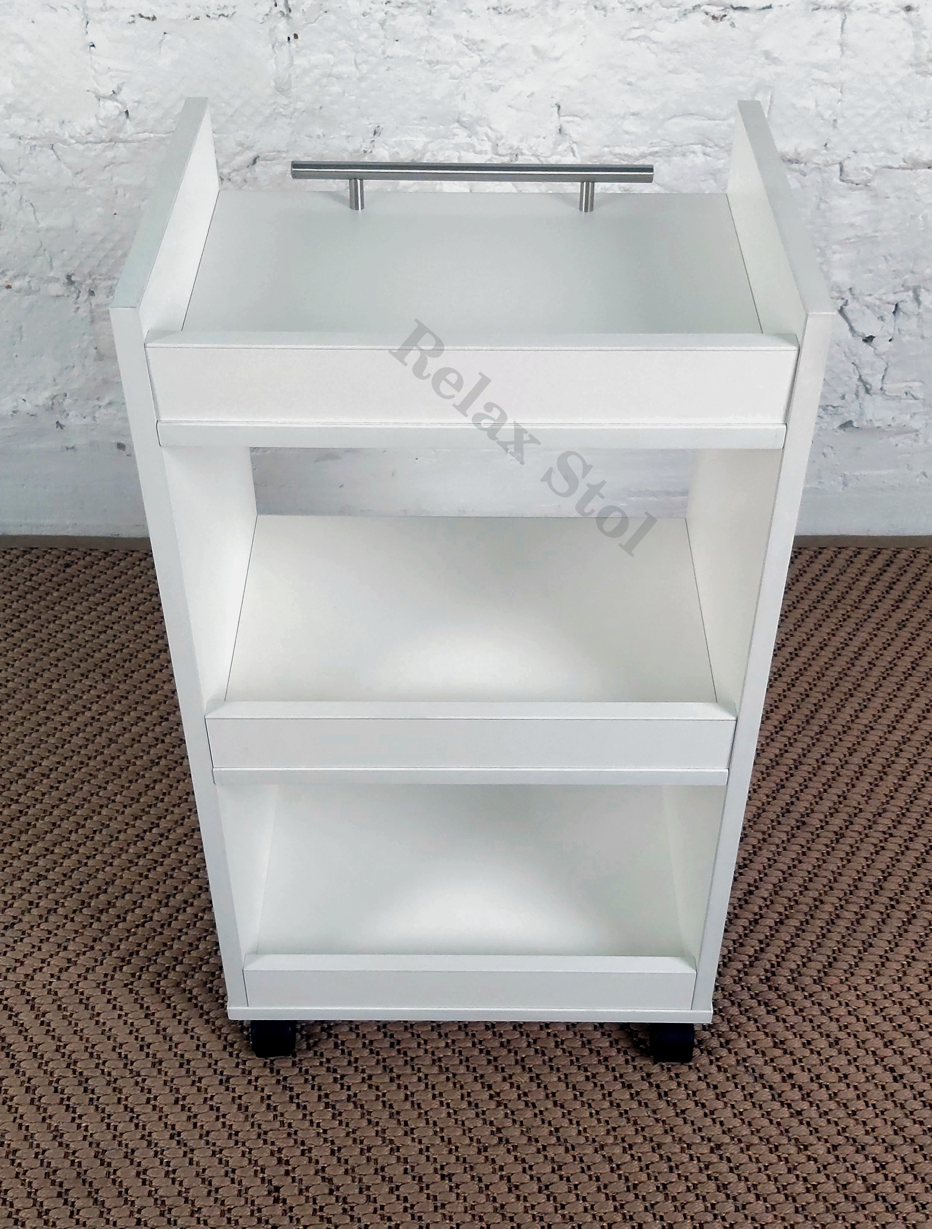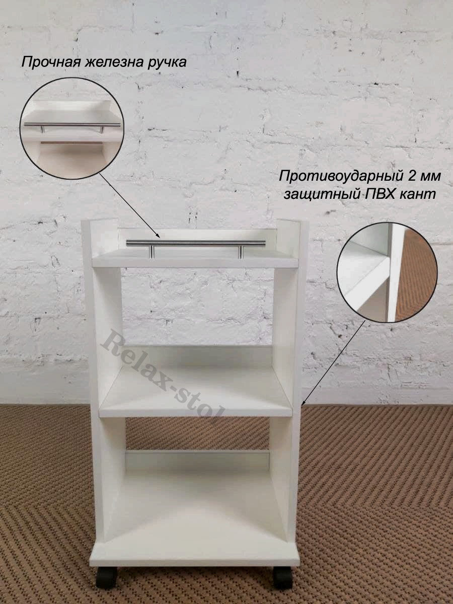 Способ применения:Тележка косметологическая применяется для салонов красоты, парикмахерских, для домашнего применения и в любых других помещениях.Комплектация:ЛДСП; ручка 1шт; Колесики 4 штОписание:Косметологическая тележка этажерка из ламинированного ЛДС