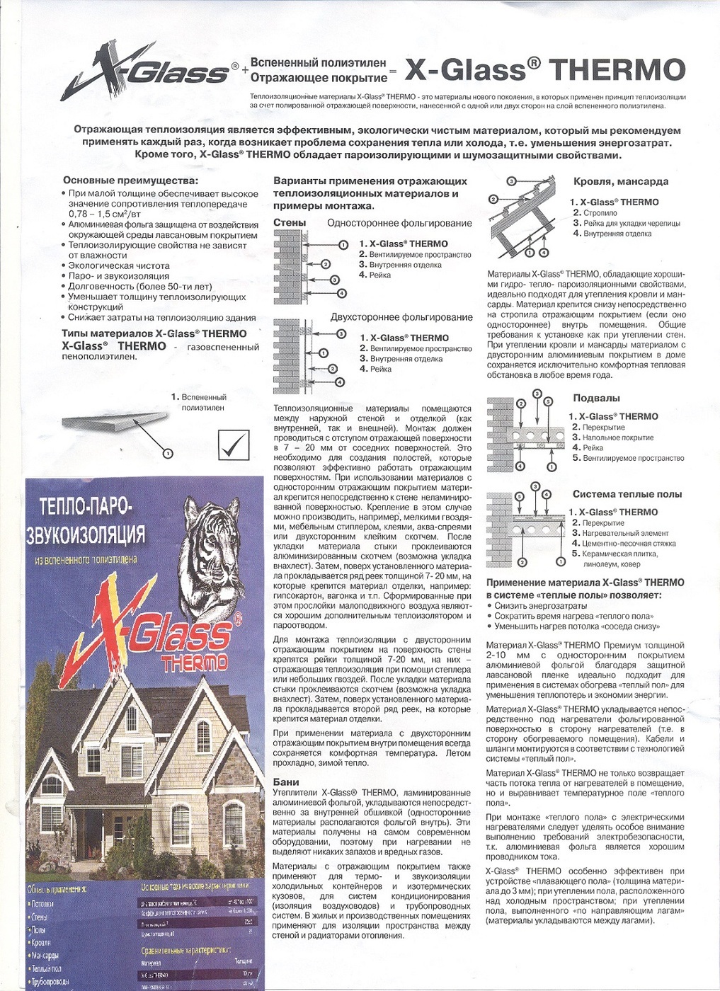 Комплектация:Отрез 6 м.квОписание:Изготавливается на основе вспененного полиэтилена с закрытой ячеистой структурой. Имеет элемент теплового зеркала – слой алюминиевой фольги, которая способствует отражению до 98% лучистого тепла, повышая общую эффективнос