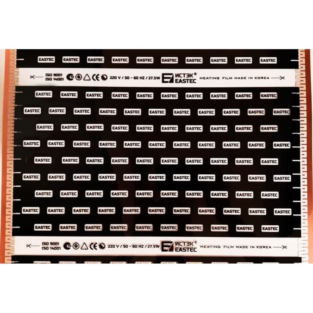 Пленочный теплый пол EASTEC ширина 50 см длина 5 м.п.Мощности нагрева в 220 Вт/м2 достаточно для отопления помещений с установленными легкими напольными покрытиями, такими, как ламинат, паркет и линолеум. Вследствие небольшой максимальной температуры нагр