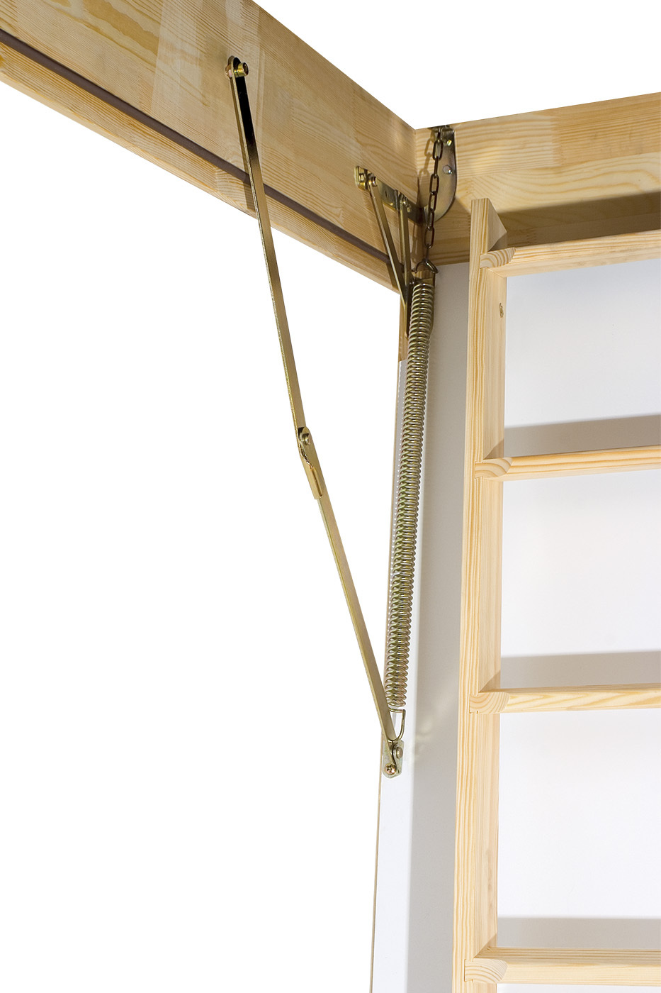 Чердачная лестница LTK Thermo обладает утеплённой крышкой люка (толщина с утеплителем – 66 мм), что позволяет использовать лестницу даже в домах, где значительна разница температур между этажами. Белая крышка люка лестницы идеально подходит для светлых по