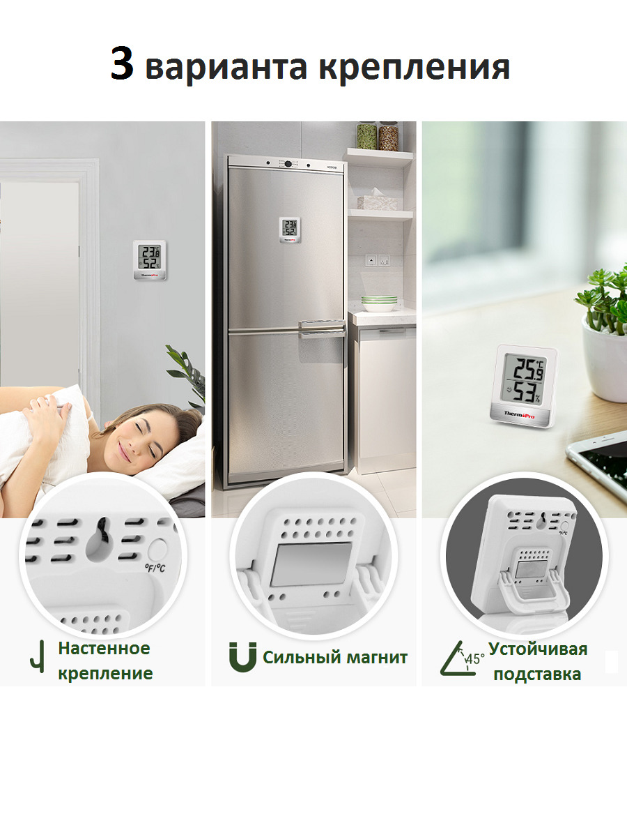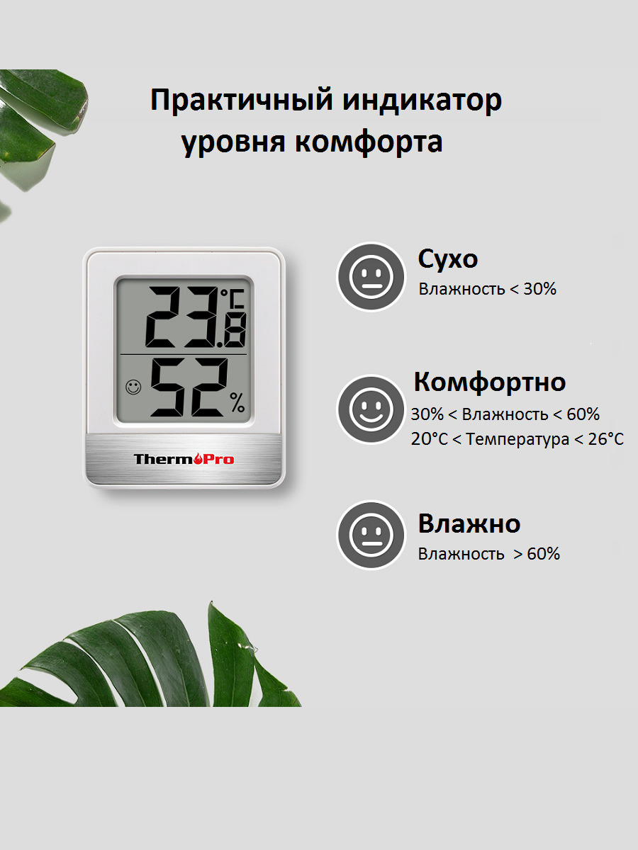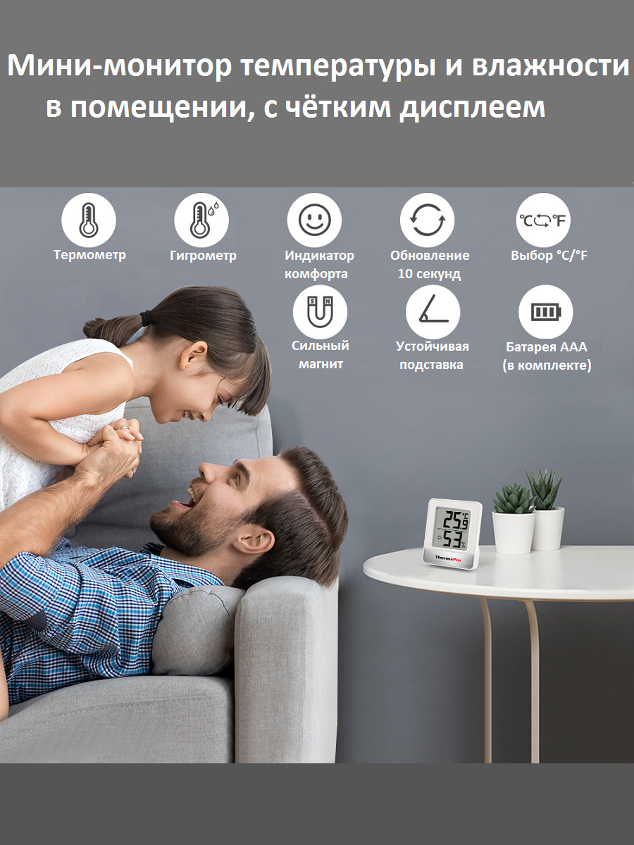 ВАЖНО! ВРЕМЕННО СМЕШАННАЯ ПОСТАВКА, БАТАРЕИ МОЖЕТ НЕ БЫТЬ В КОМПЛЕКТЕ!Термометр гигрометр ThermoPro TP49 - это высокая точность измерения и непревзойденное качество, заслужившее доверие в США, Европе и ряде других стран. Это мини-термометр для помещений и