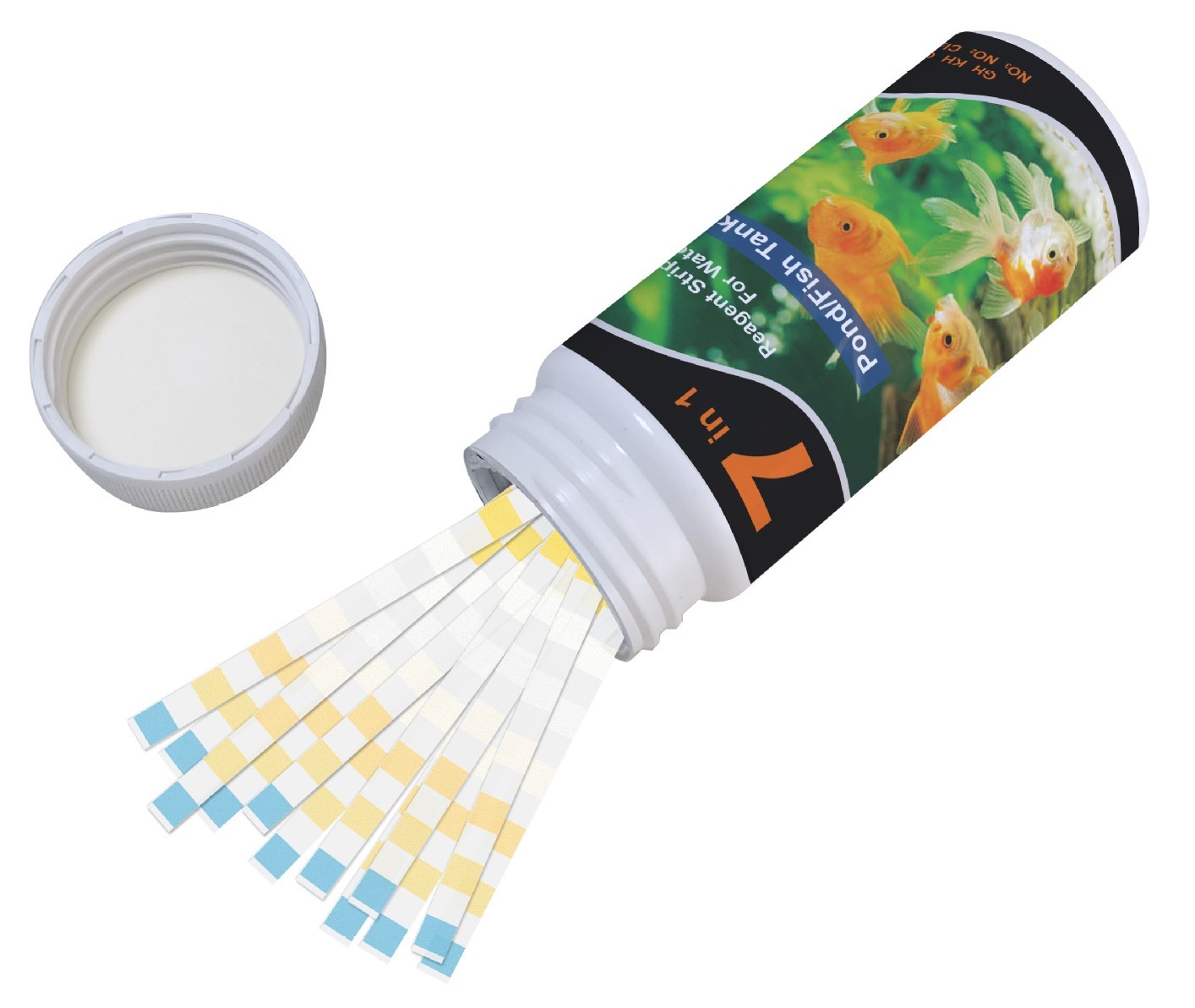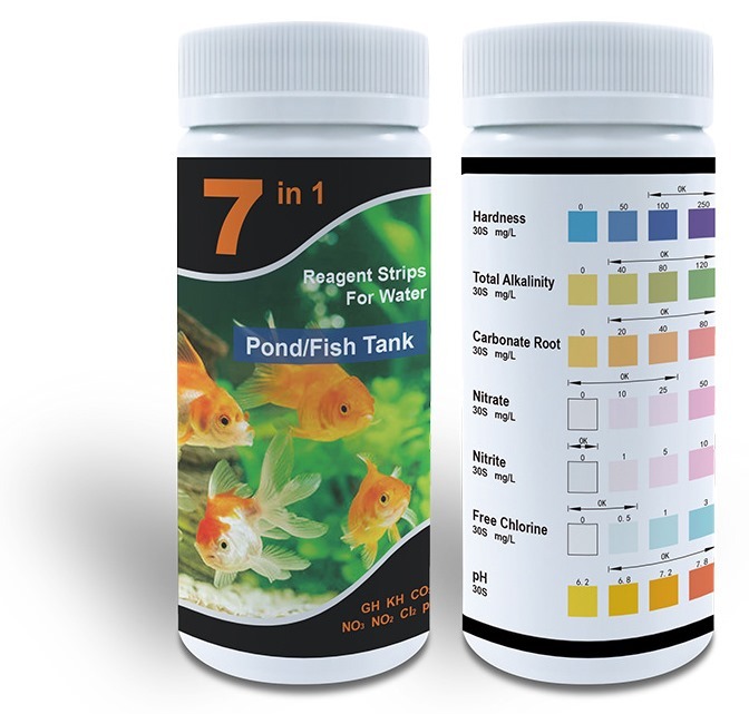 Тест позволяет быстро определить основные параметры воды в аквариуме. Одна упаковка рассчитана на 50 тестов. Тестируемые параметры: GH, KH, NO3, NO2, Cl2, pH, CO3Инструкция:1. Выньте одну тест-полоску из бутылки и немедленно плотно закройте крышку.2.