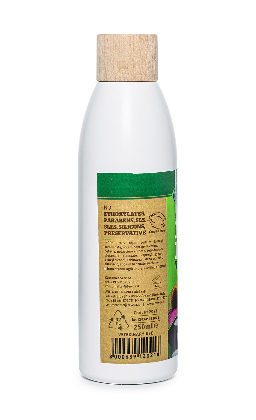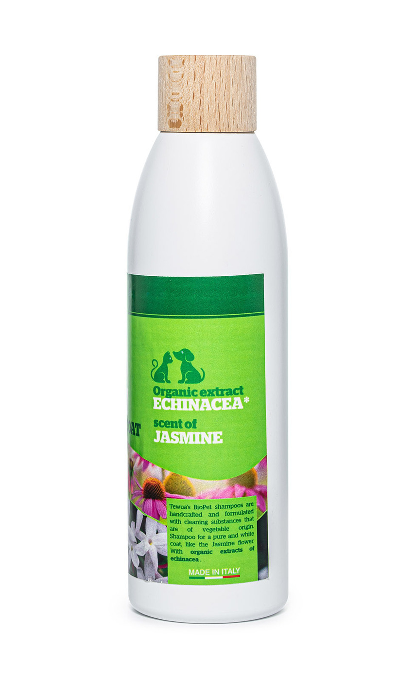 Шампунь создан с сохранением всех ценных питательных веществ. Жасмин тонизирует и очищает кожу, снимает раздражение. Экстракт эхинацеи ускоряет восстановление кожи и повышает её эластичность, оказывая противовоспалительное действие. Шампунь мягко отбелива