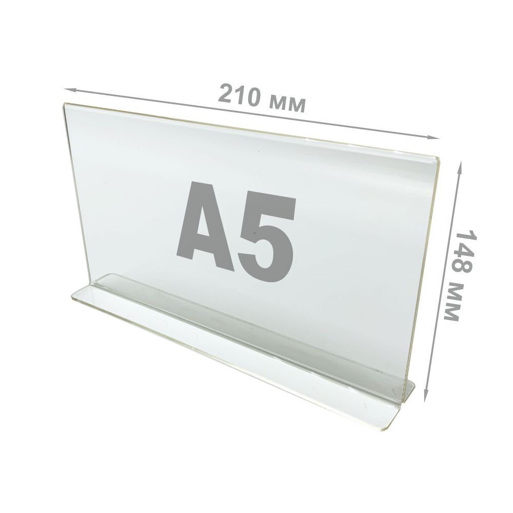 Двухсторонняя настольная подставка.Держатель информации изготовлен из идеально прозрачного акрилового стекла. Подойдет для размещения меню, рекламных материалов.Тип товара: подставкаФормат листовки: А5Расположение: горизонтальноеФункциональность: двухстор