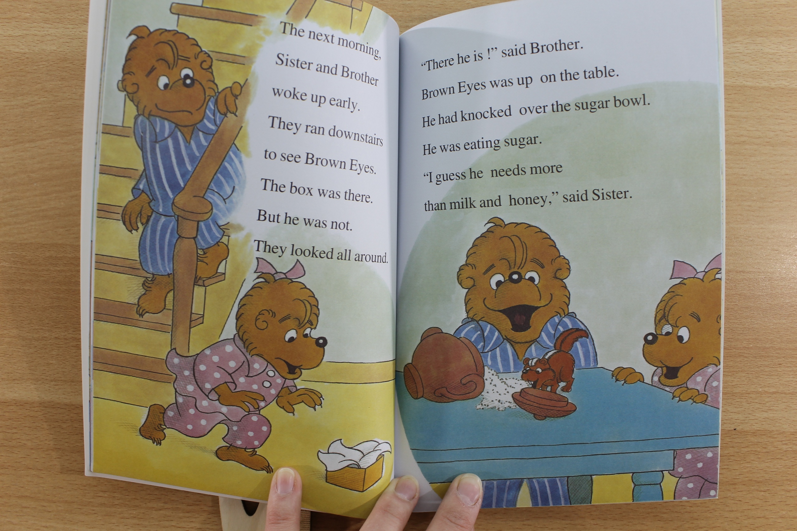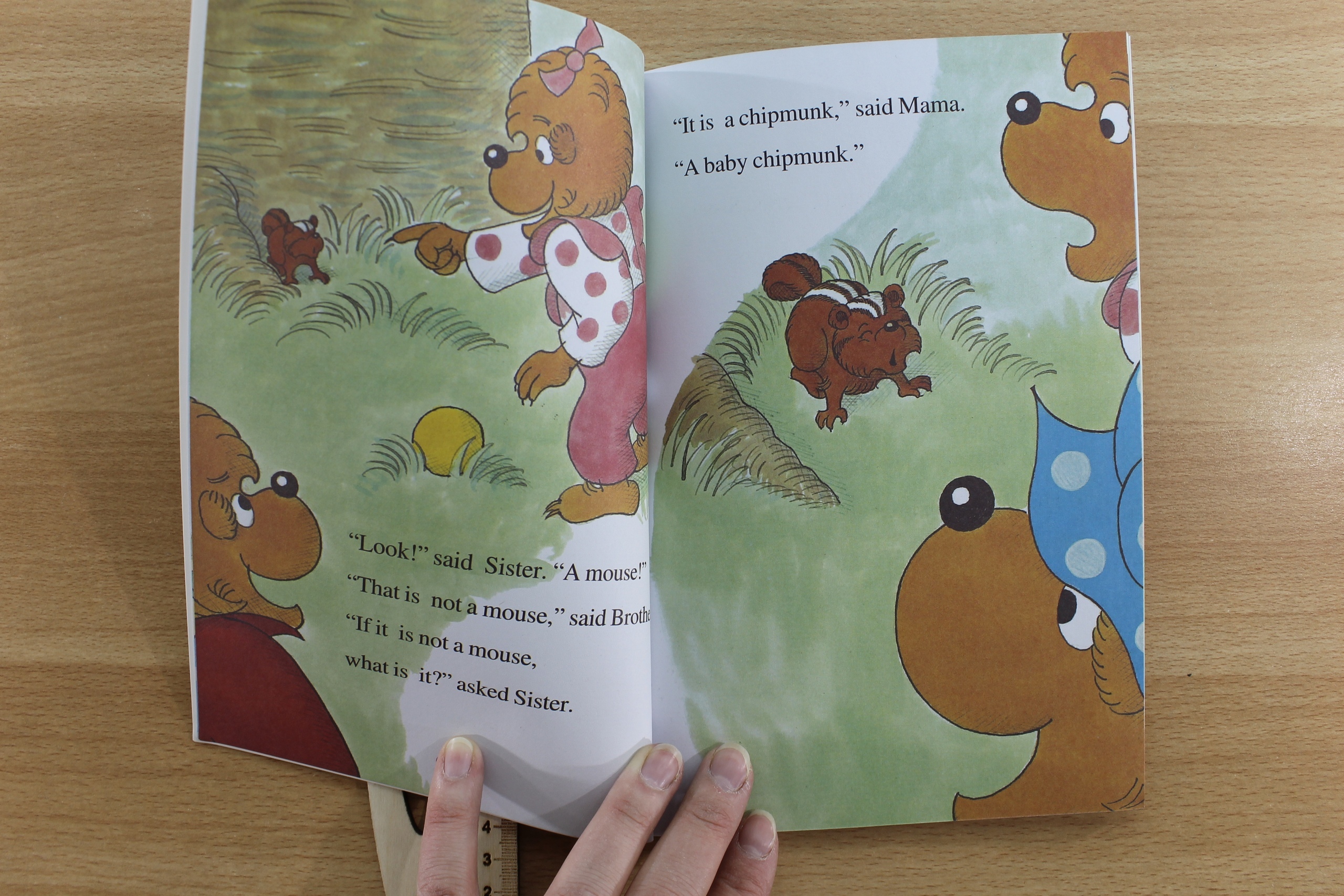 The Bear family adopts a curious baby chipmunk. Brown Eyes explores Papa's desk, Mama's sewing basket, and Papa's pant leg -- all the way up to the knee! Ages 4 - 8