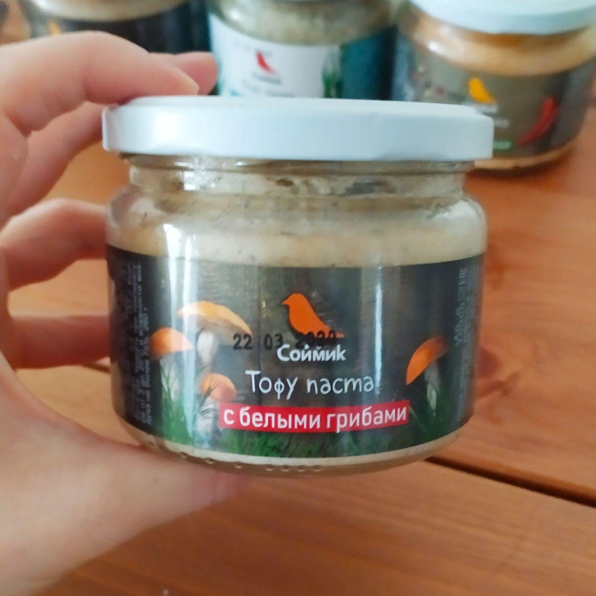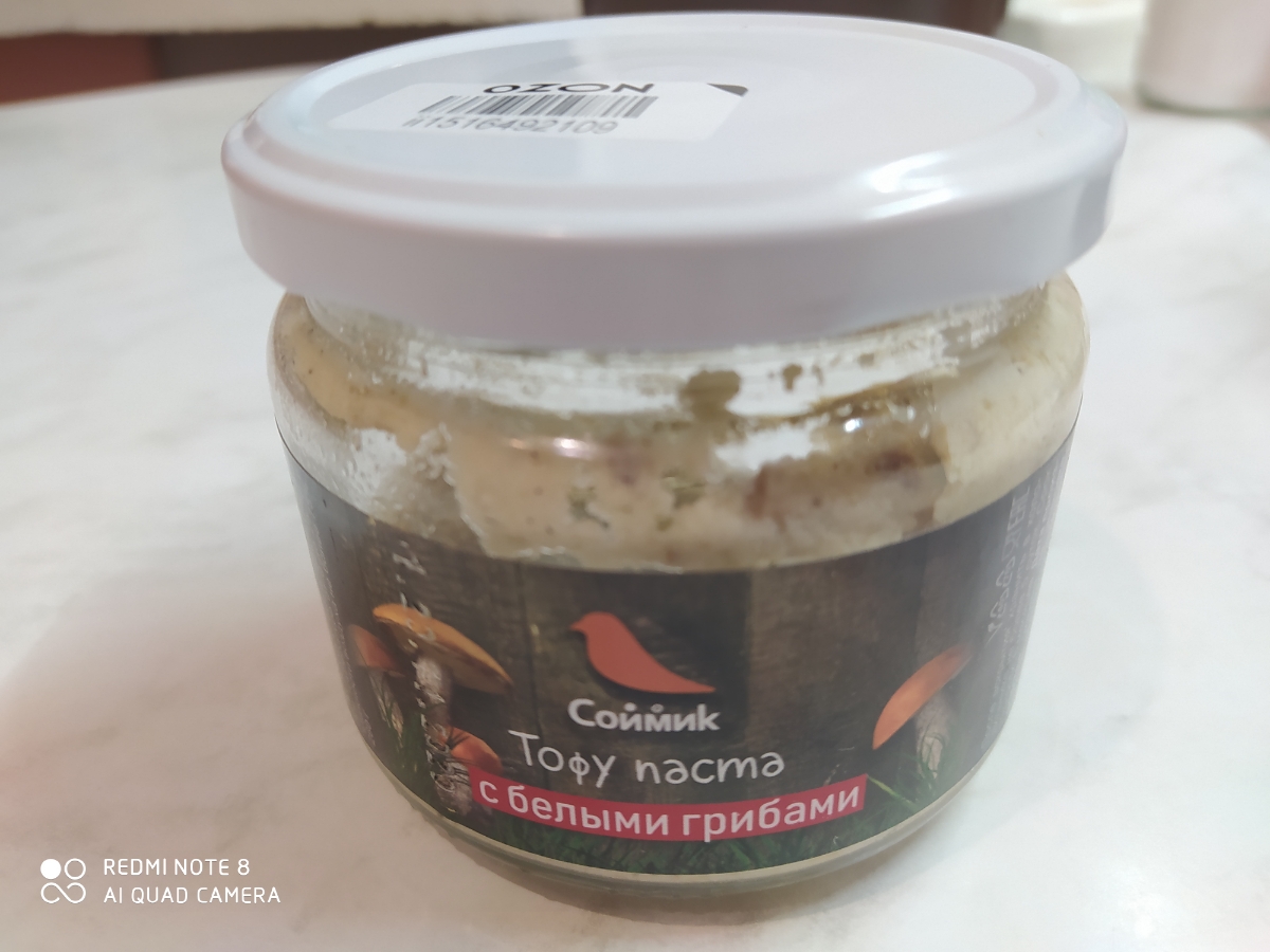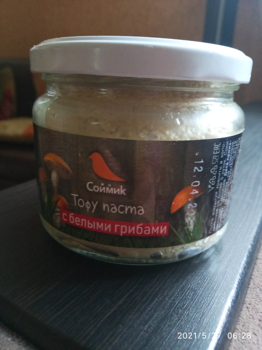 Условия хранения:При комнатной температуреСостав:Соевые бобы, вода, свертывающее вещество (хлористый кальций), подсолнечное масло рафинированное, соль, грибы белые, лук сушеный, перец чёрный, соевый соус, специи.Описание:Нежная паста из тофу с натуральным