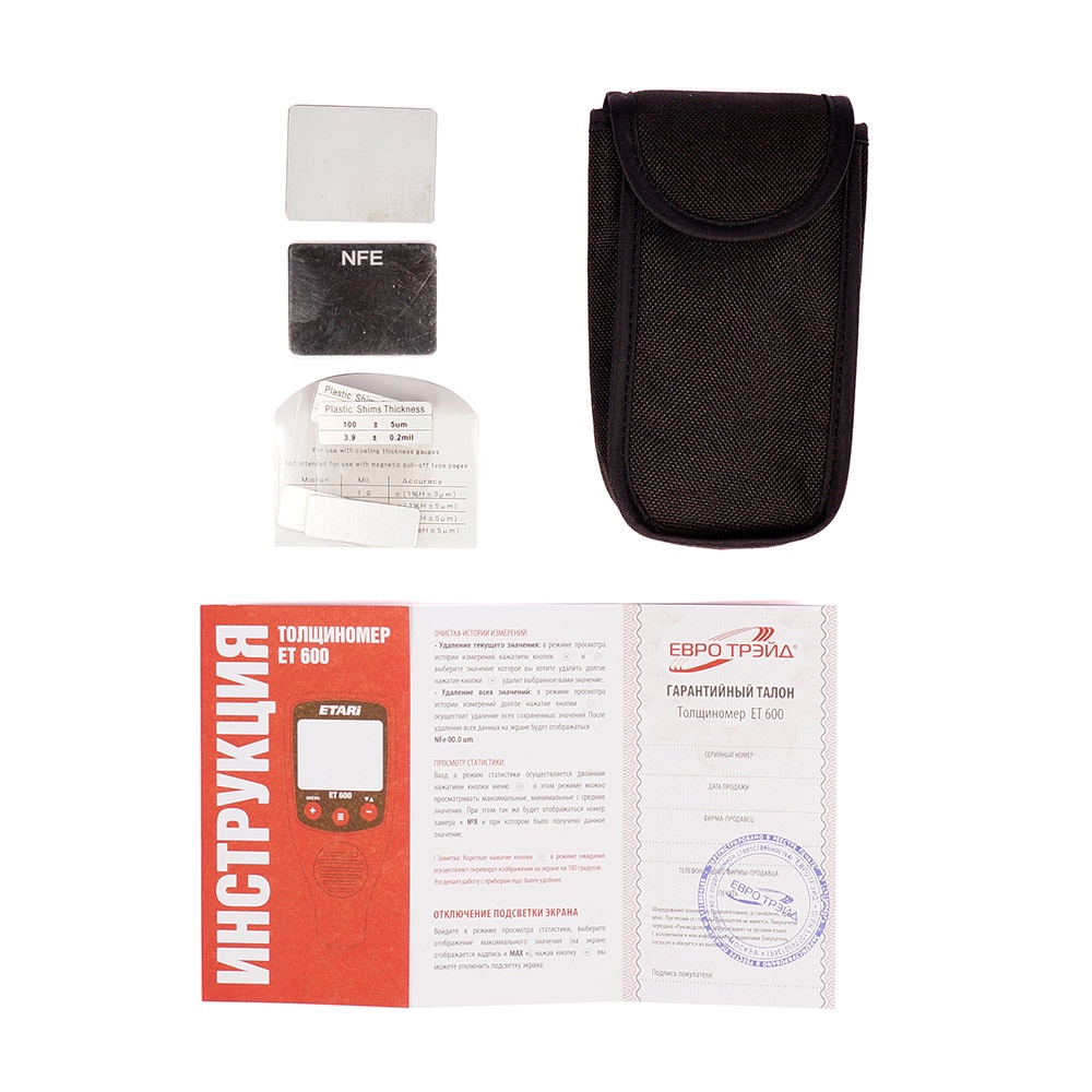 Толщиномер ЛКП Etari ET-600 - прибор нового поколения для измерений слоя краски на поверхностях из черных и цветных металлов. Имеет функцию автоматической калибровки, что упрощает его использование в разы, вам больше не требуется носить комплект калиброво