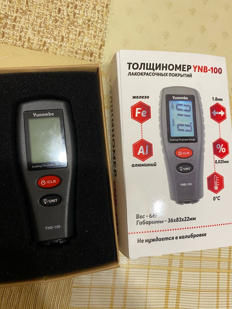 Комплектация:толщиномер "Yunombo YNB-100"; чехол; инструкция по эксплуатации; упаковка.Описание:Новый универсальный электронный толщиномер с ЖК экраном YNB-100 используется для измерения толщины лакокрасочного покрытия автомобилей с целью обнаружения неза