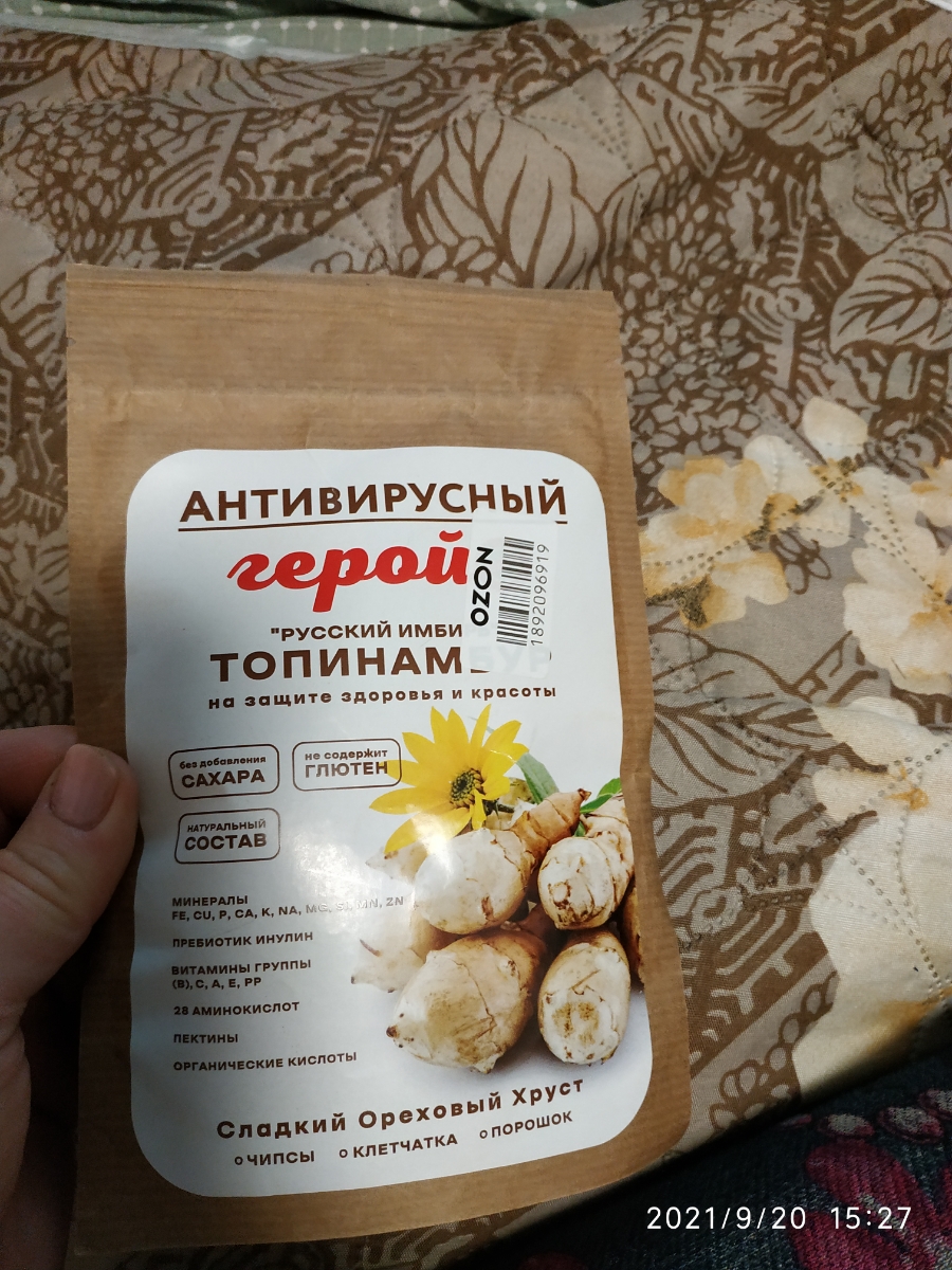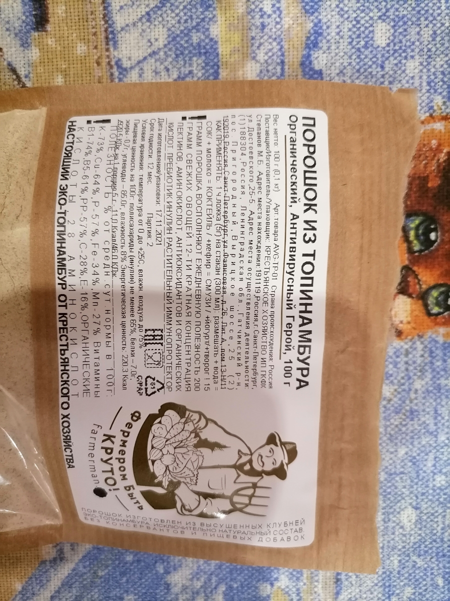 Состав:Порошок из клубней эко-топинамбура. Мелкой пылевидной фракции. Водорастворимый.Комплектация:Топинамбур Порошок Антивирусный Герой 100г х2штОписание:Топинамбур порошок из эко-клубней. Мелкой пылевидной фракции. ВодорастворимыйВЫРАЩЕНО и ПРОИЗВЕДЕНО