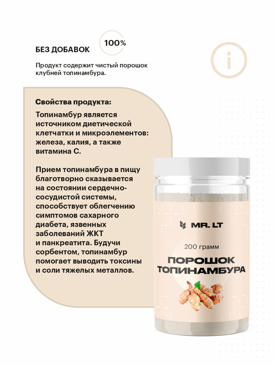 Состав:Сухой порошок клубней топинамбура 100%Условия хранения:Хранить в герметичной упаковке, в сухом помещении, вдали от света и доступа кислорода, при температуре не выше 20° С и относительной влажности воздуха не более 60%. Хранить в местах, недоступны
