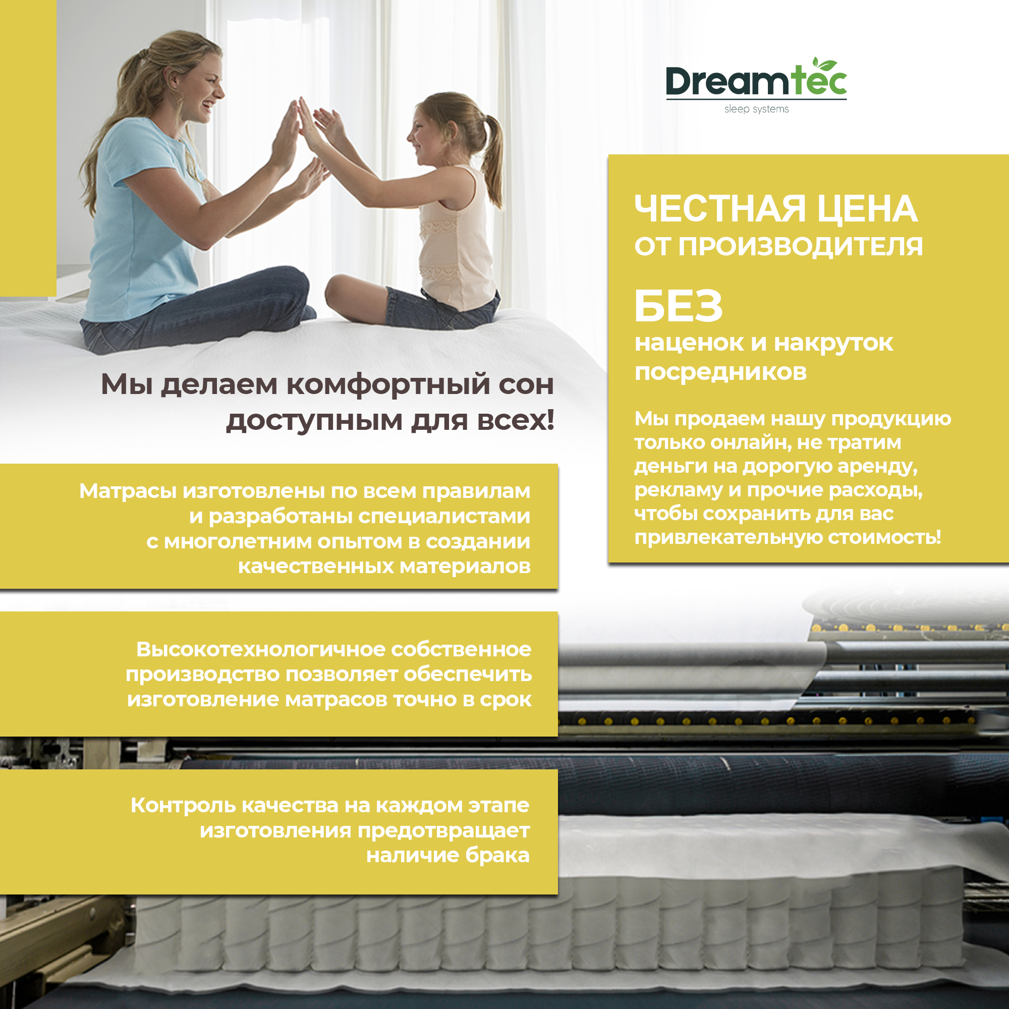 Матрас – топпер Dreamtec Correct Dario с двумя сторонами жесткости и высотой 5 см отличный вариант для повышения уровня комфорта вашего матраса или эксплуатации на диване. Топпер идеально подходит для эксплуатации на раскладном диване, когда нет возможно