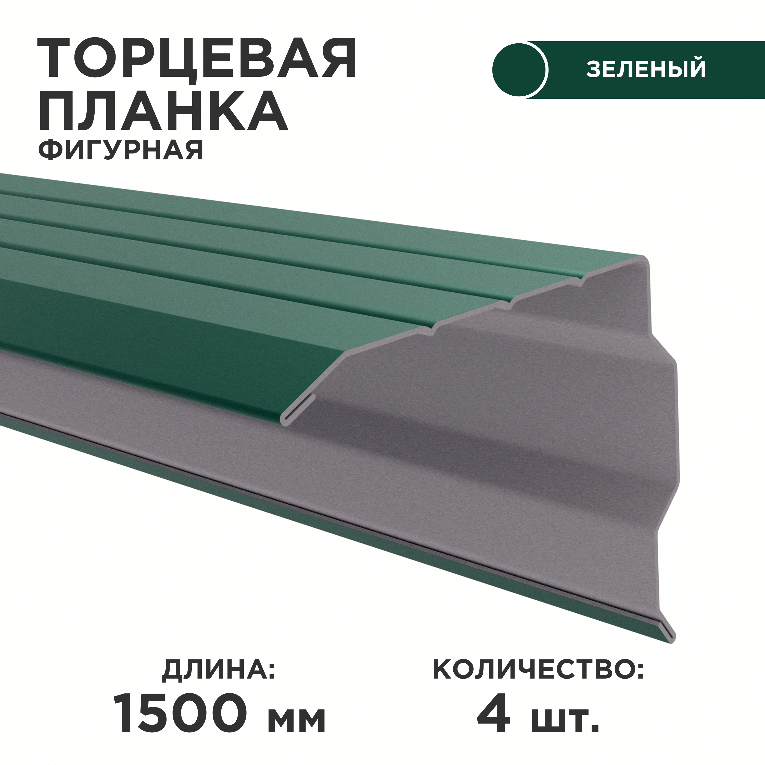 Комплектация:Торцевая планка фигурная 4шт, цвет 6005, тощина 0.45Описание:Торцевая планка фигурная 4шт, цвет 6005, тощина 0.45, длина 1.5м.