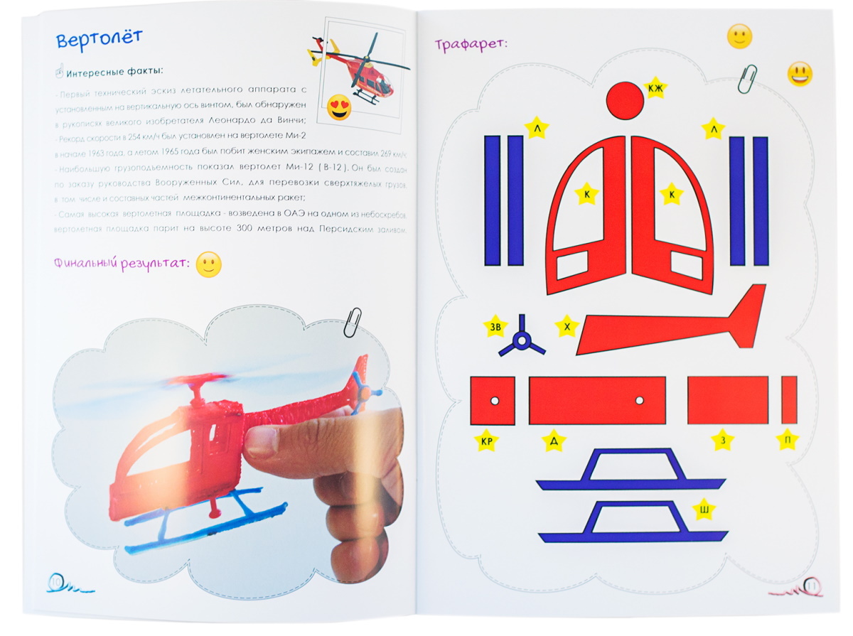 Комплектация:Сборник трафаретов для 3d ручки (Формат А4);Термостойкий прозрачный коврикОписание:Лучшие трафареты для 3d ручки ! В новом сезоне обновили дизайн и добавили новые трафареты. Книга представлена в формате А4. Ребенку будет легче научиться рисов