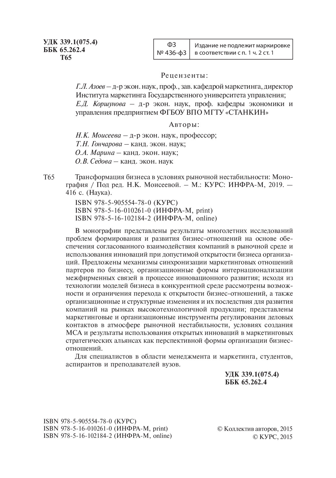 В монографии представлены результаты многолетних исследований проблем формирования и развития бизнес-отношений на основе обеспечения согласованного взаимодействия компаний в рыночной среде и использования инноваций при допустимой открытости бизнеса органи