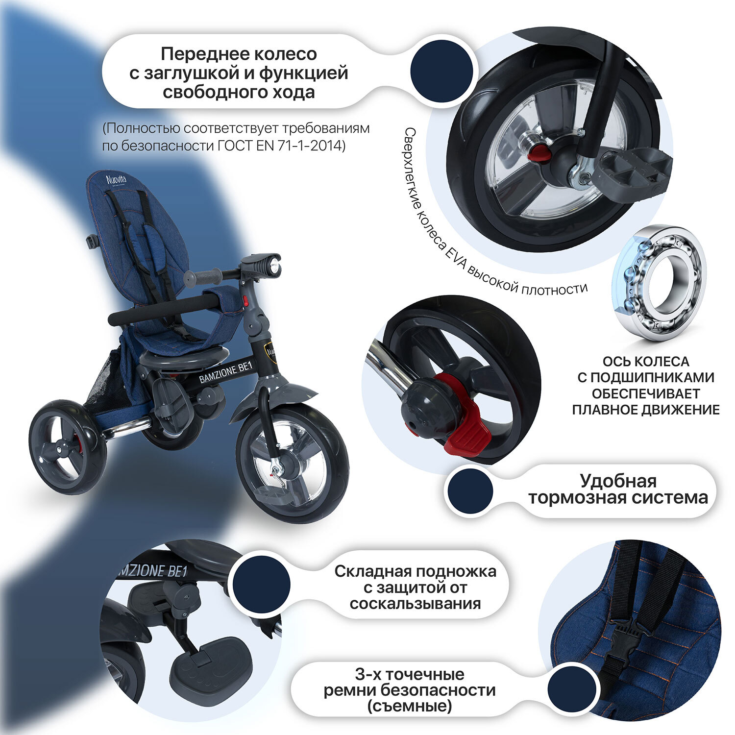 Трехколесный велосипед Nuovita Bamzione BE1Детский трёхколёсный велосипед Bamzione BE1 рассчитан на малышей от года до 3-х лет: он имеет адаптивную конструкцию и легко подстраивается под потребности ребенка и его родителей. С помо