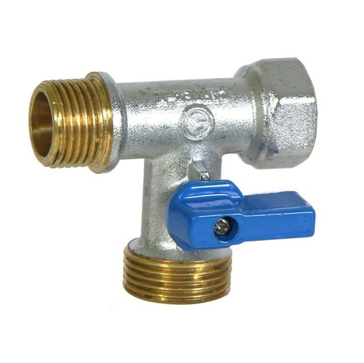 Трехпроходной кран для стиральной машины покрытие: хромированное, присоединение: 1/2" наружнняя - 3/4"наружнняя -1/2"наружнняя.Для стиральных машин.