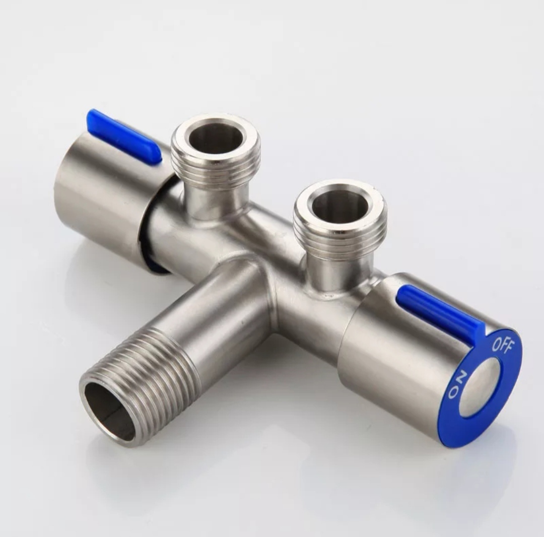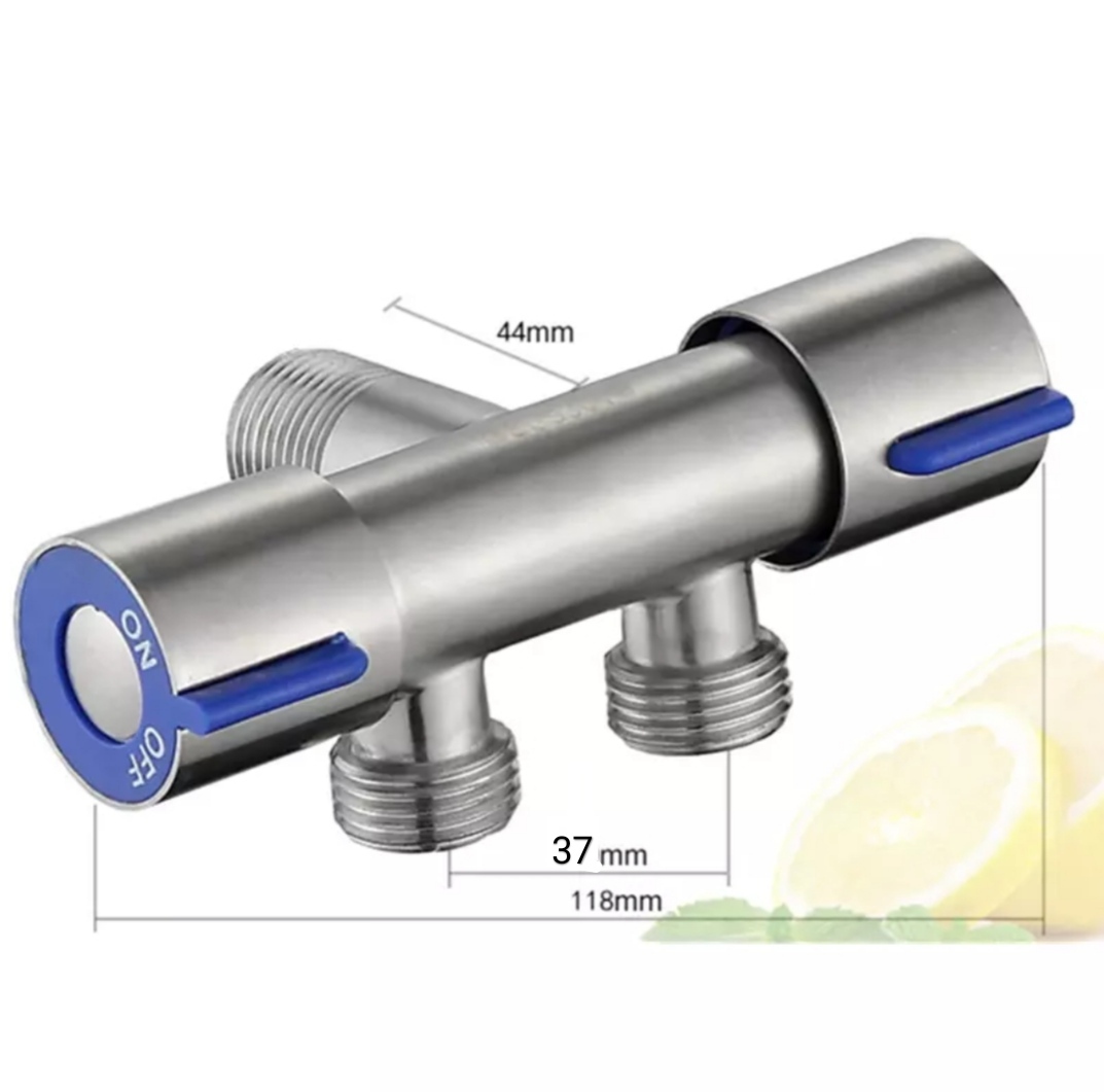 Комплектация:1 кран.1 розетка.Описание:Кран с двумя выходами, с возможностью независимого перекрытия двух выходов, очень удобен в применении, для подключения одновременно двух санитарно-технических приборов (смывного бачка, гигиенического душа, стиральной