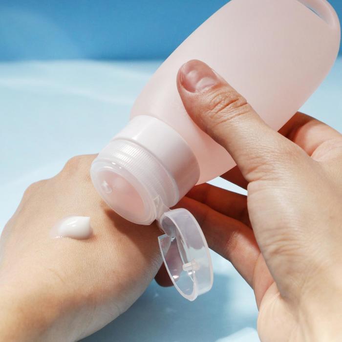 Тюбики из плотного матового силикона с удобным дозатором станут отличными помощниками в путешествии. Ты можешь наполнить их шампунем, бальзамом, увлажняющим кремом или антисептиком. Благодаря маленькому размеру тюбики можно спокойно перевозить в ручной кл