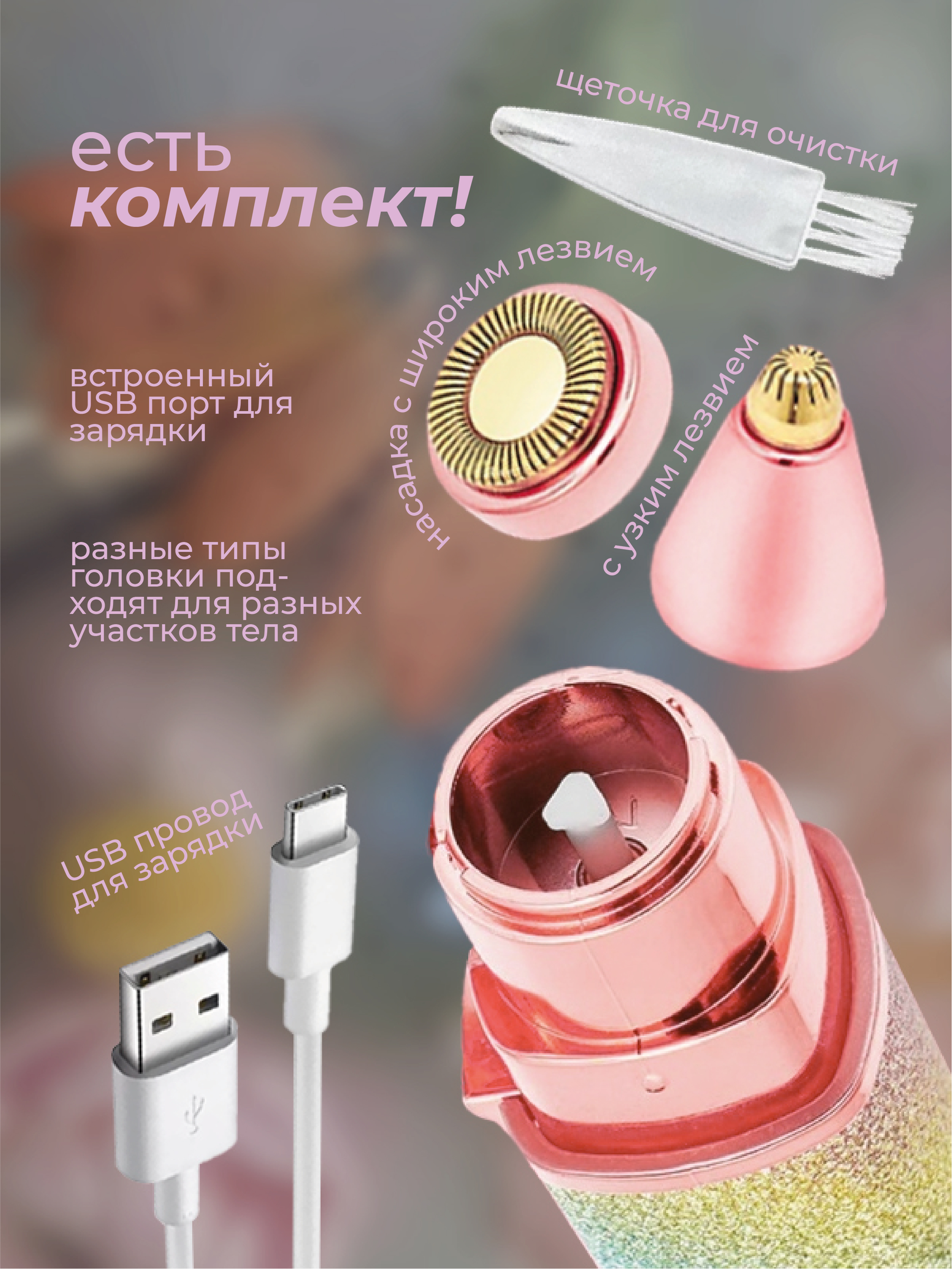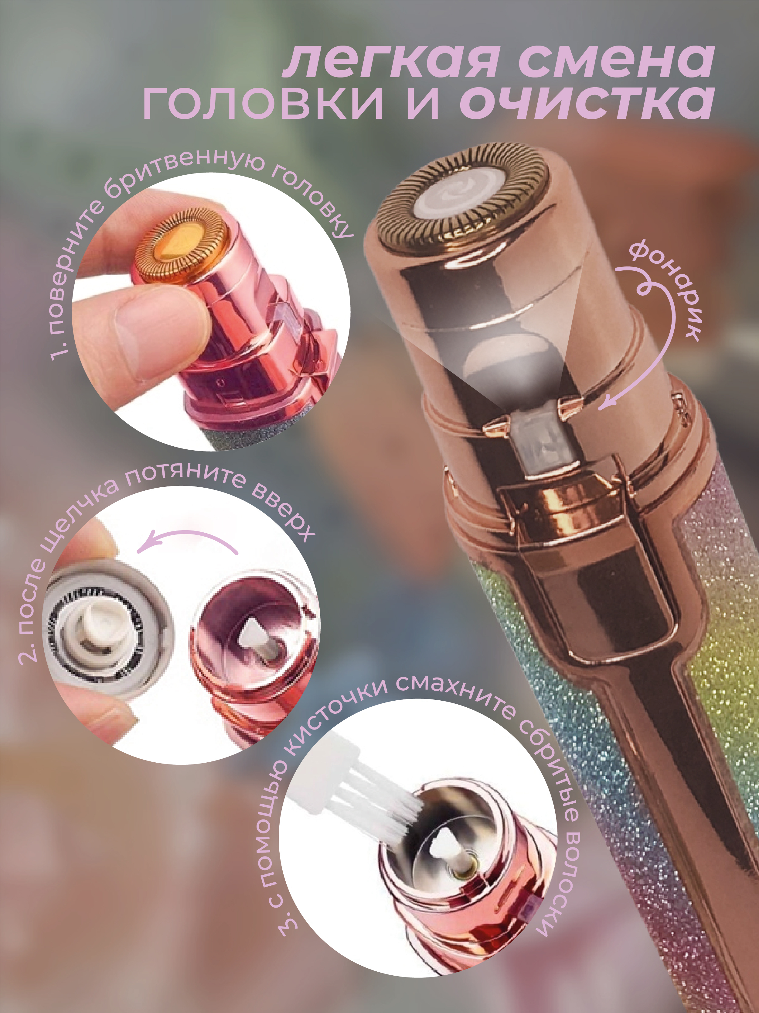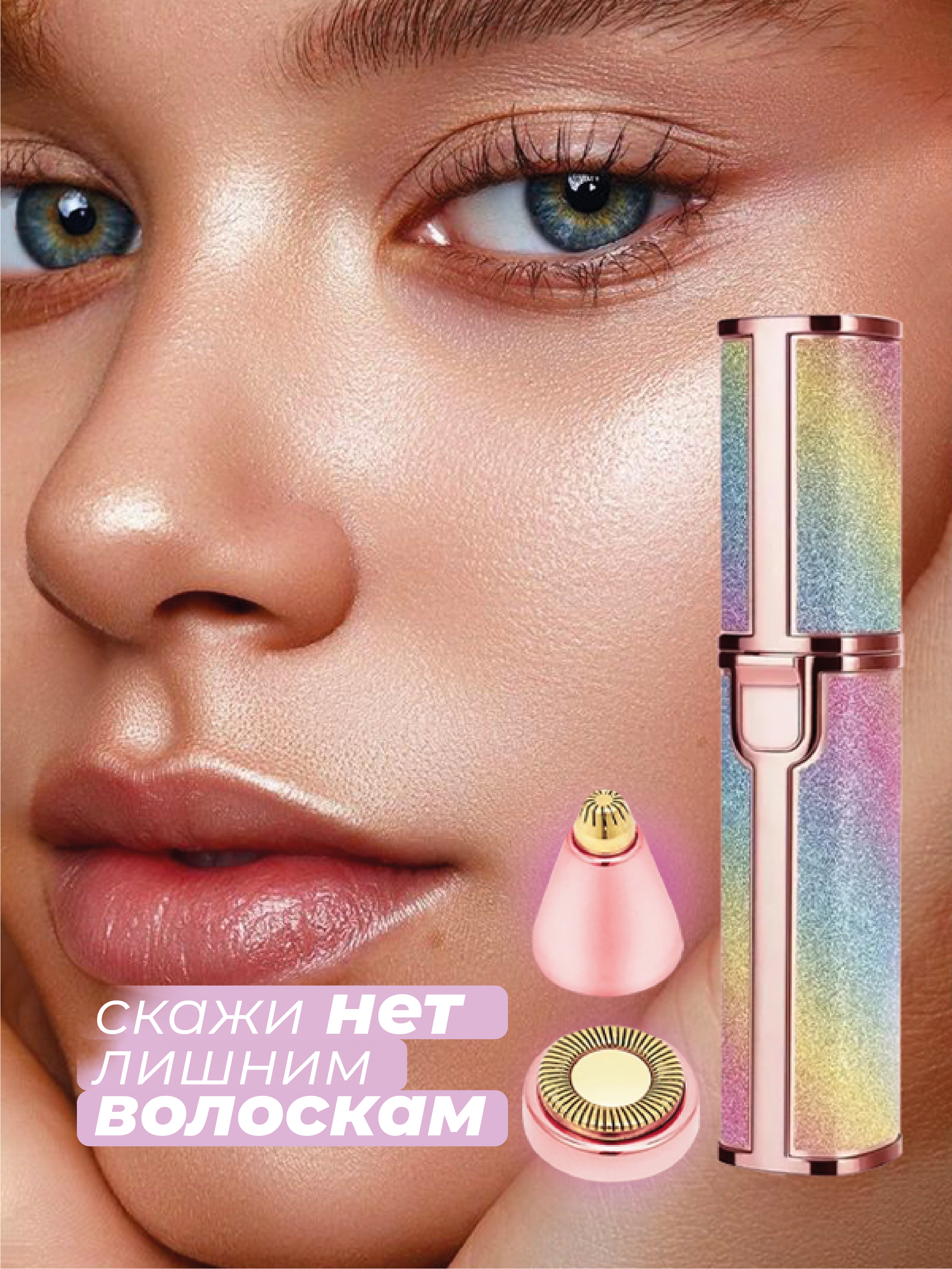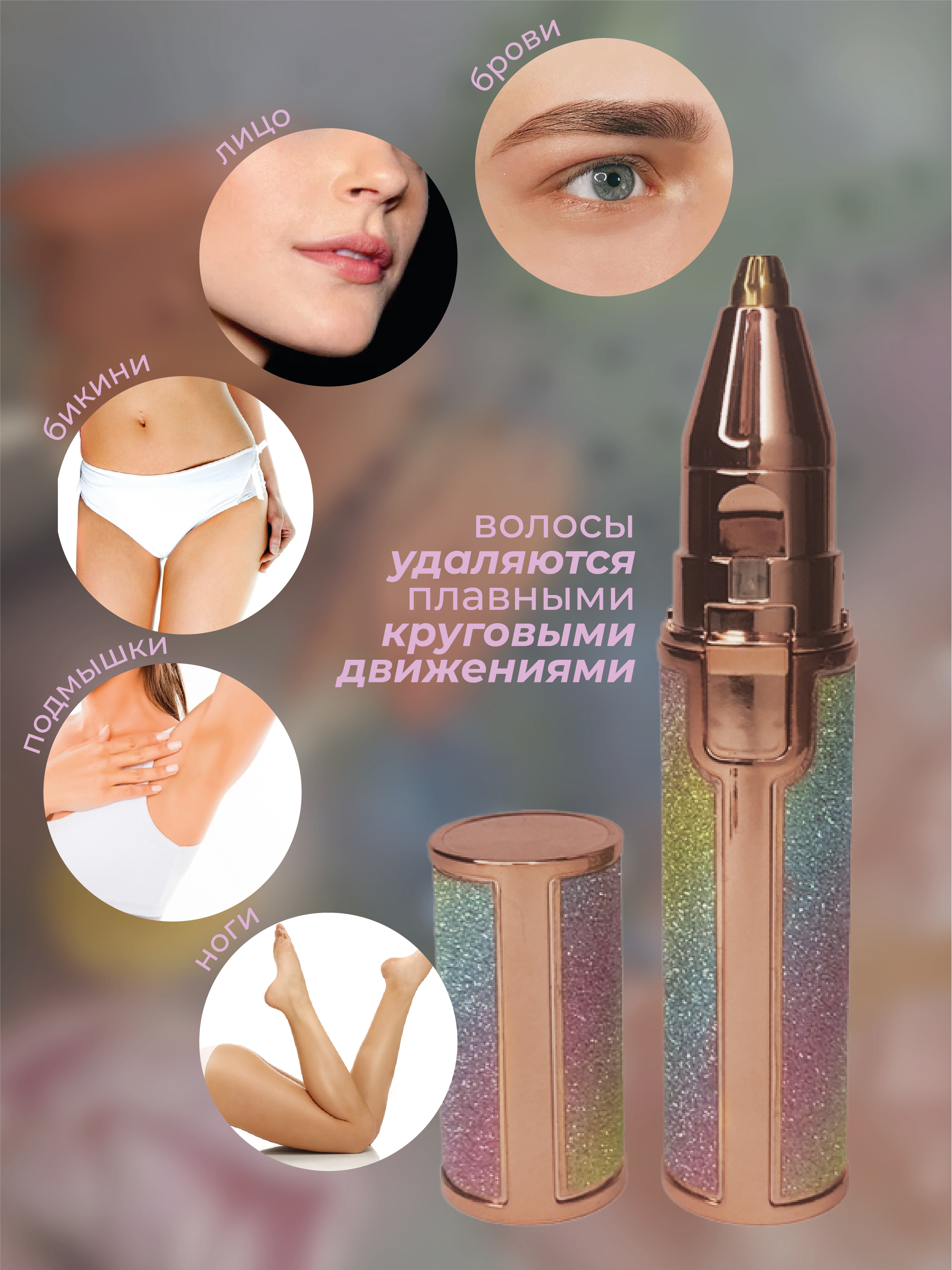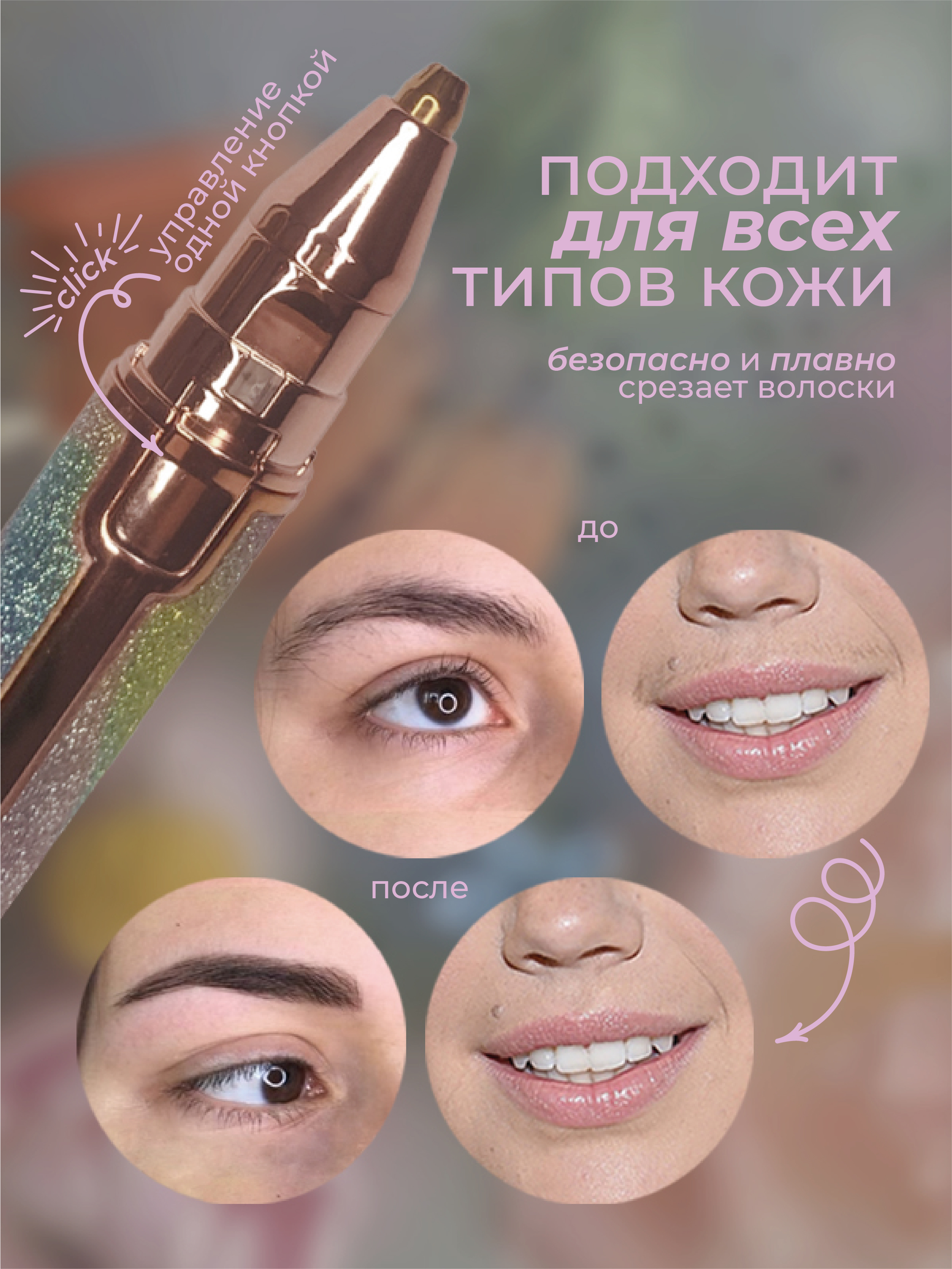 Новый портативный триммер-электричекий. Больше никакого выщипывания, пинцетов и боли. Он легко удаляет крошечные волоски с верхней части губ, бровей, подбородка, носа и зоны бикини без использования воска или крема для депиляции. Он подходит для ежедневно