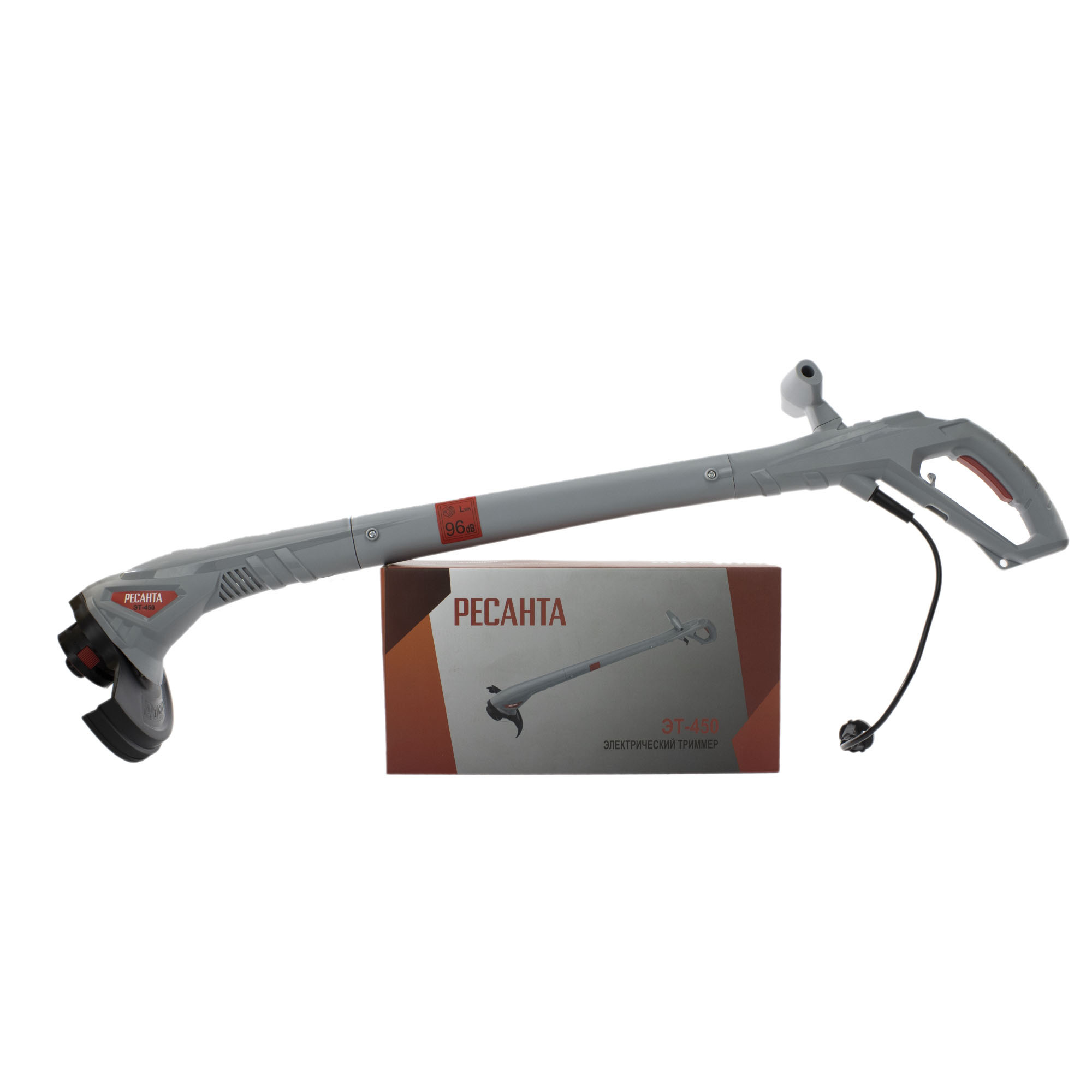 Триммер электрический ЭТ-450 Ресанта - надежный инструмент для кошения мягкой молодой травы на небольшой площади. Подойдёт для работы на приусадебном участке или в саду. Ширина обработки - 24 см.На основной рукоятке предусмотрена мягкая накладка для удобн