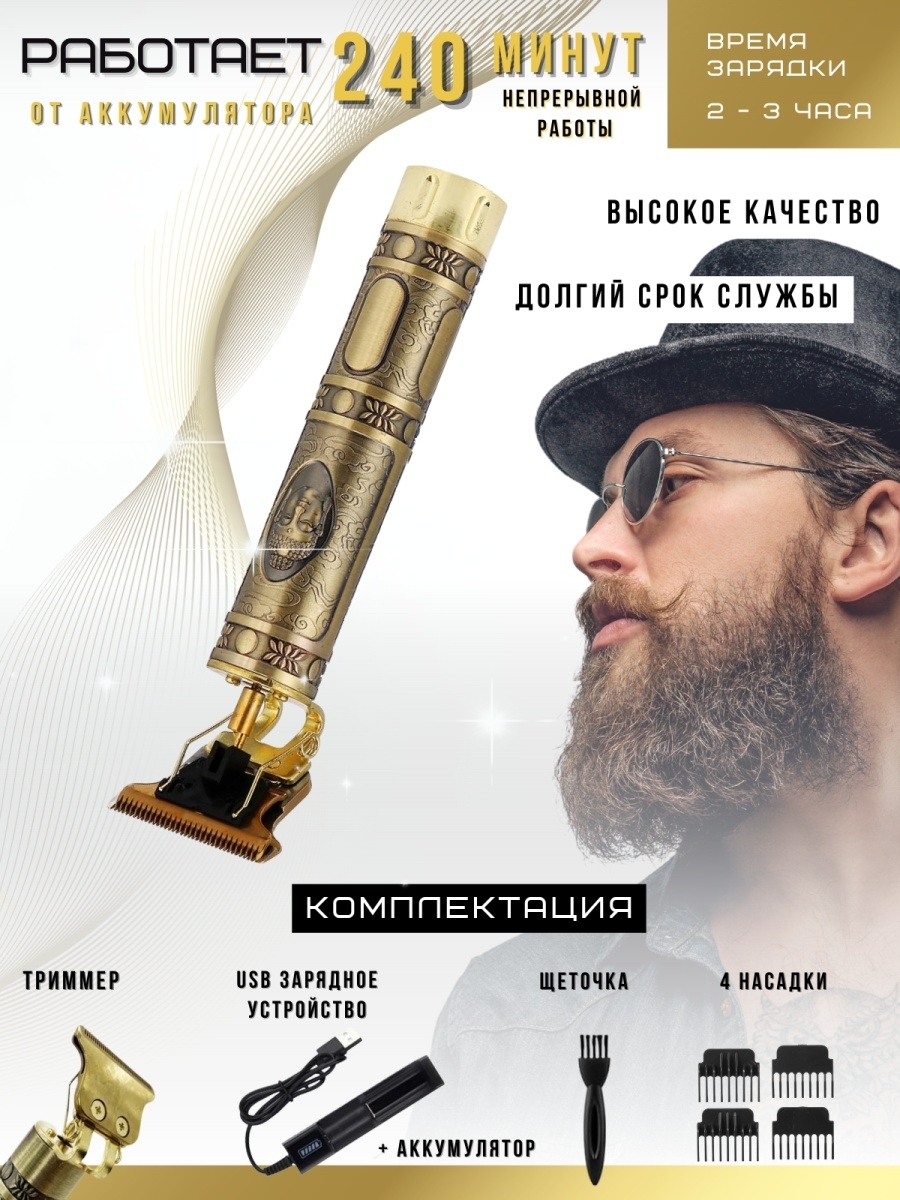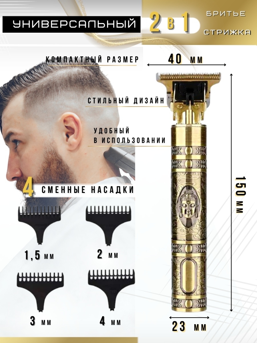 Комплектация:1. Машинка для стрижки волос 2. Зарядный кабель 3. Насадки: 1,5 мм, 2 мм, 3 мм, 4 мм 4. Щетка для чистки 5. Масло 6. Упаковка-коробкаОписание:Профессиональный, многофункциональный, электрический, аккумуляторный триммер Дракон для бритья волос