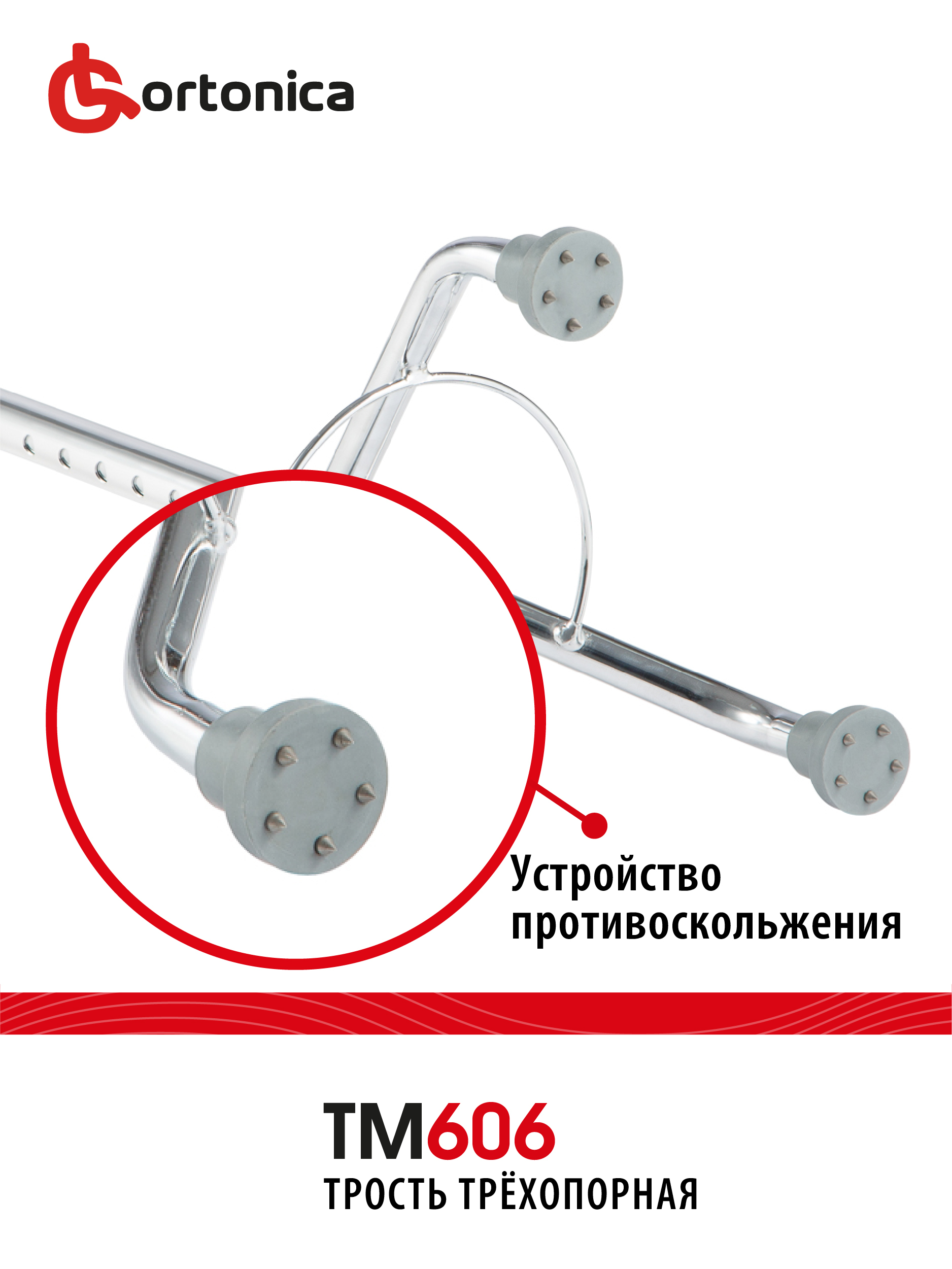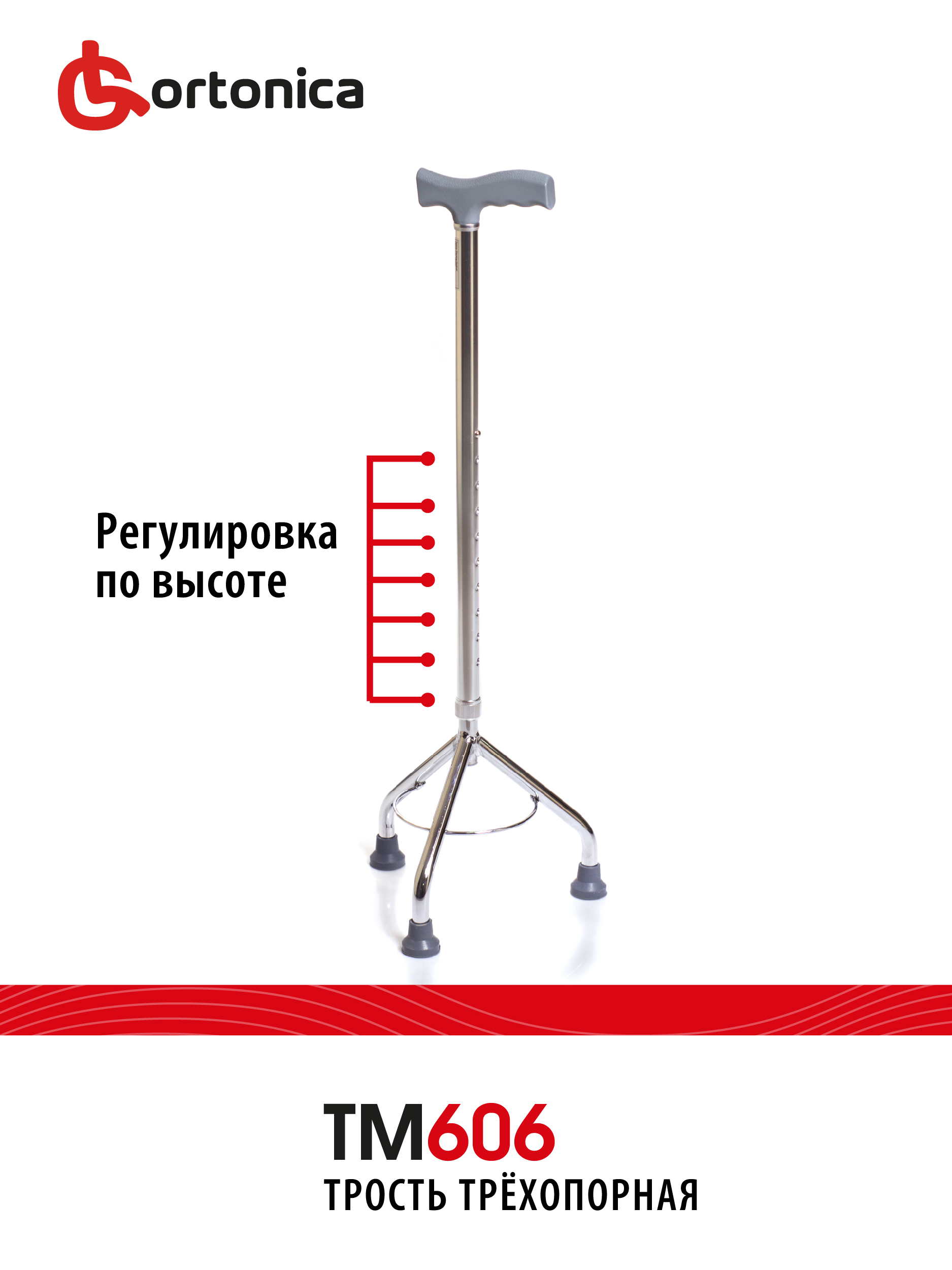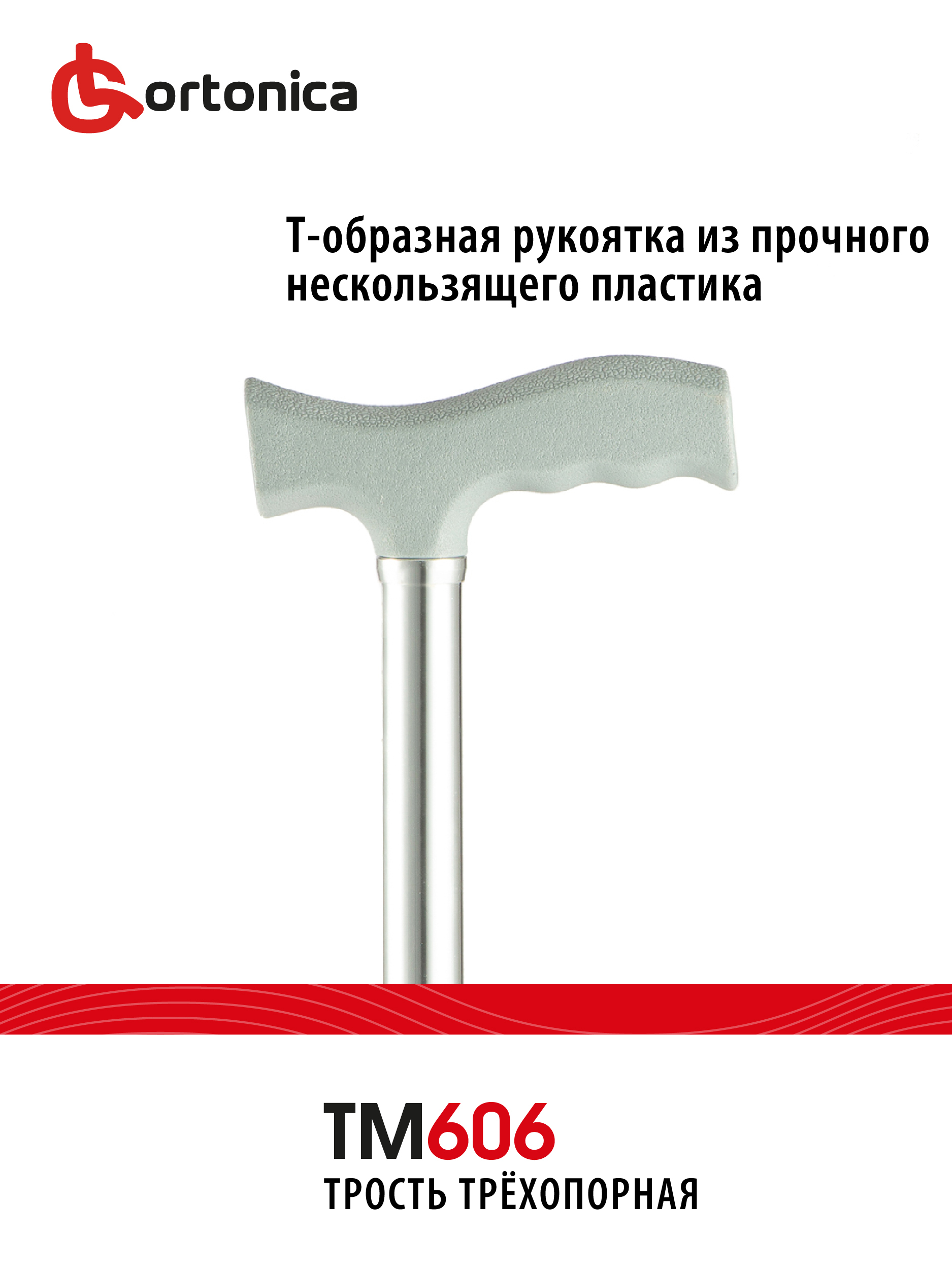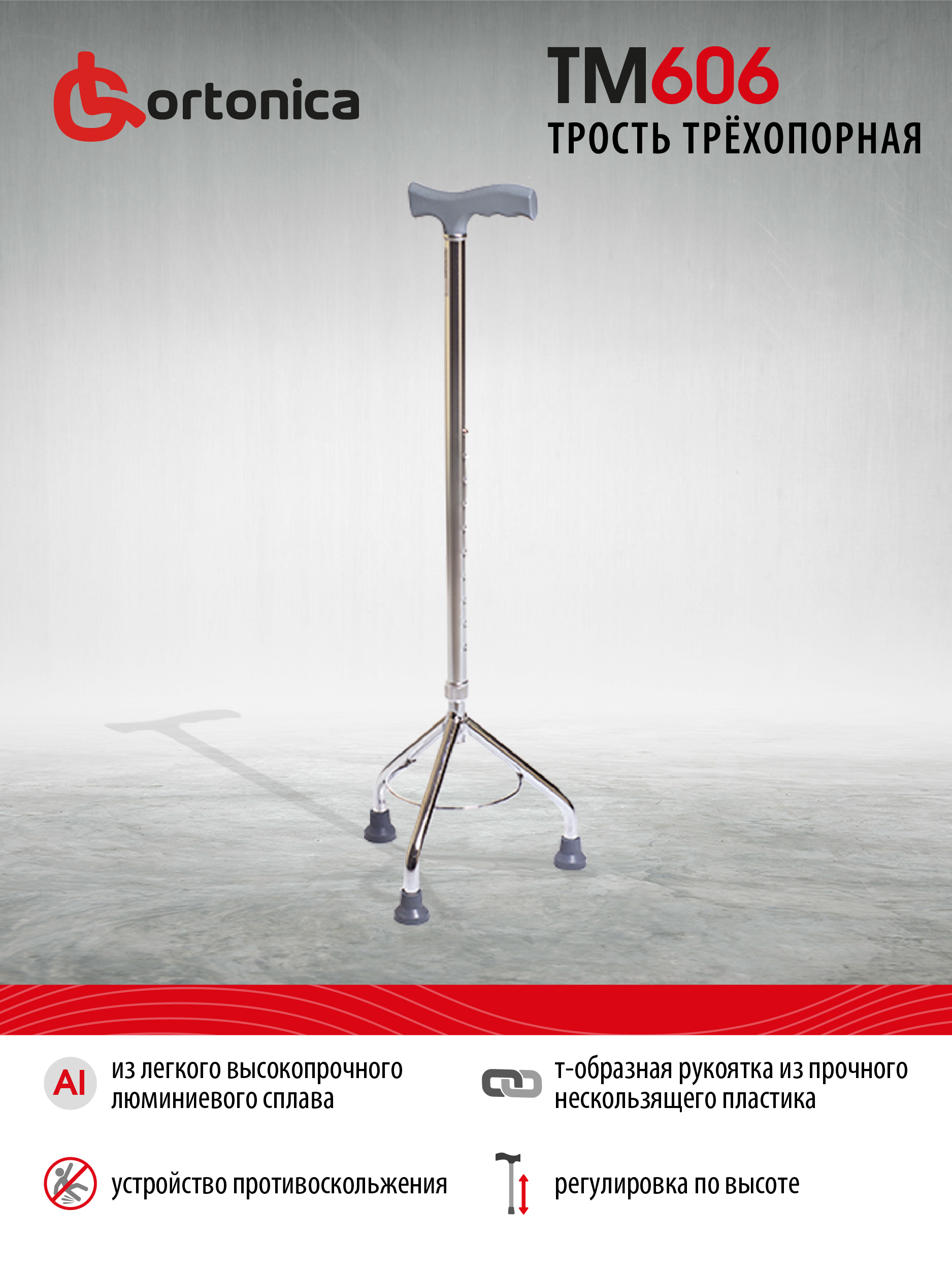 Трость Ortonica ТМ 606 предназначена для облегчения передвижения людей с малой и средней степенью нарушения координации движений. Трость телескопическая с кнопочной фиксацией, Цвет: хромированная, Выполнена из высокопрочного алюминиевого сплава. Т-образна