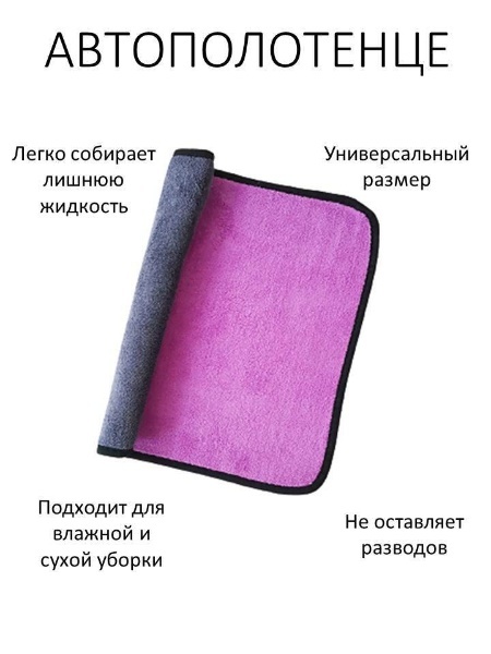 Протирочное микрофибровое полотенце для бережной и качественной сушки поверхности кузова автомобиля, впитывает до 500% от собственного веса.Такая эффективность обеспечивается за счет специального плетения «крученая петля», которое не создает поверхностног