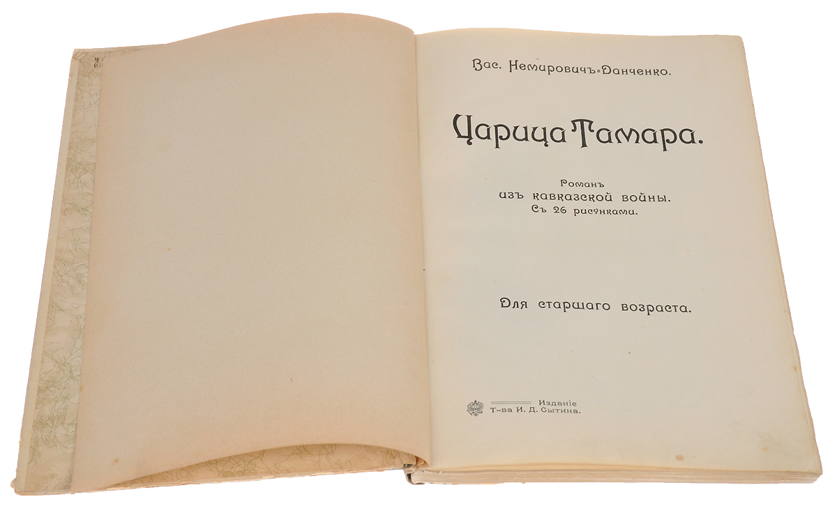 Прижизненное издание.Москва. 1910 год. Типография Товарищества И.Д.Сытина.Издательский переплет. Сохранность хорошая.Вашему вниманию предлагается роман Вас.Немировича-Данченко о кавказкой войне "Царица Тамара". Издание проиллюстрировано 26 рисунками.Для с