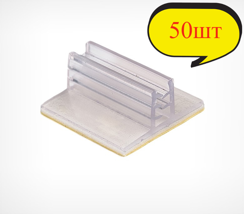 Захват Т-образный,длиной 25мм, шириной 25мм, для крепления вывесок толщиной 0,5-3мм. Самоклеящийся, прозрачный.