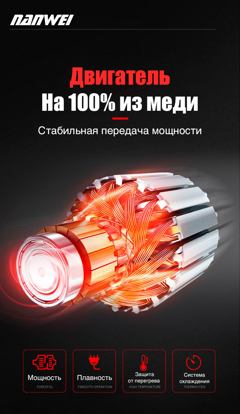 Функциональные особенностиБлокировка от случайного включения, Автоотключение при перегреве, Бесступенчатая регулировка частоты вращения, Система стабилизации оборотов