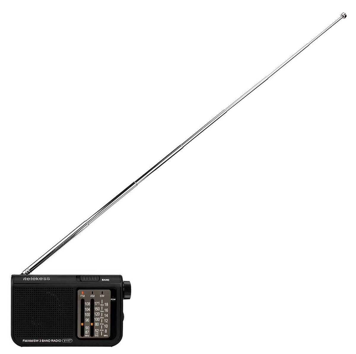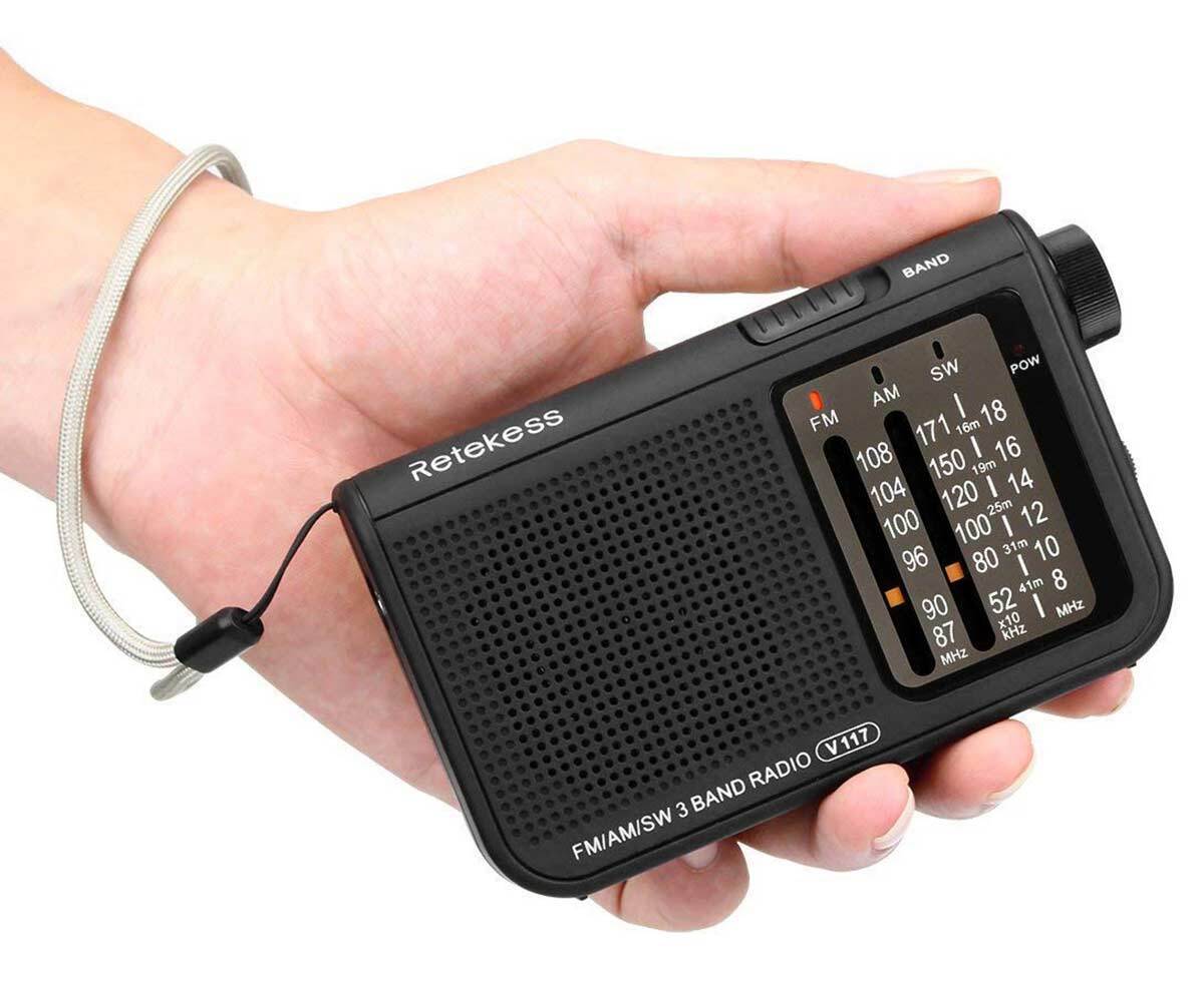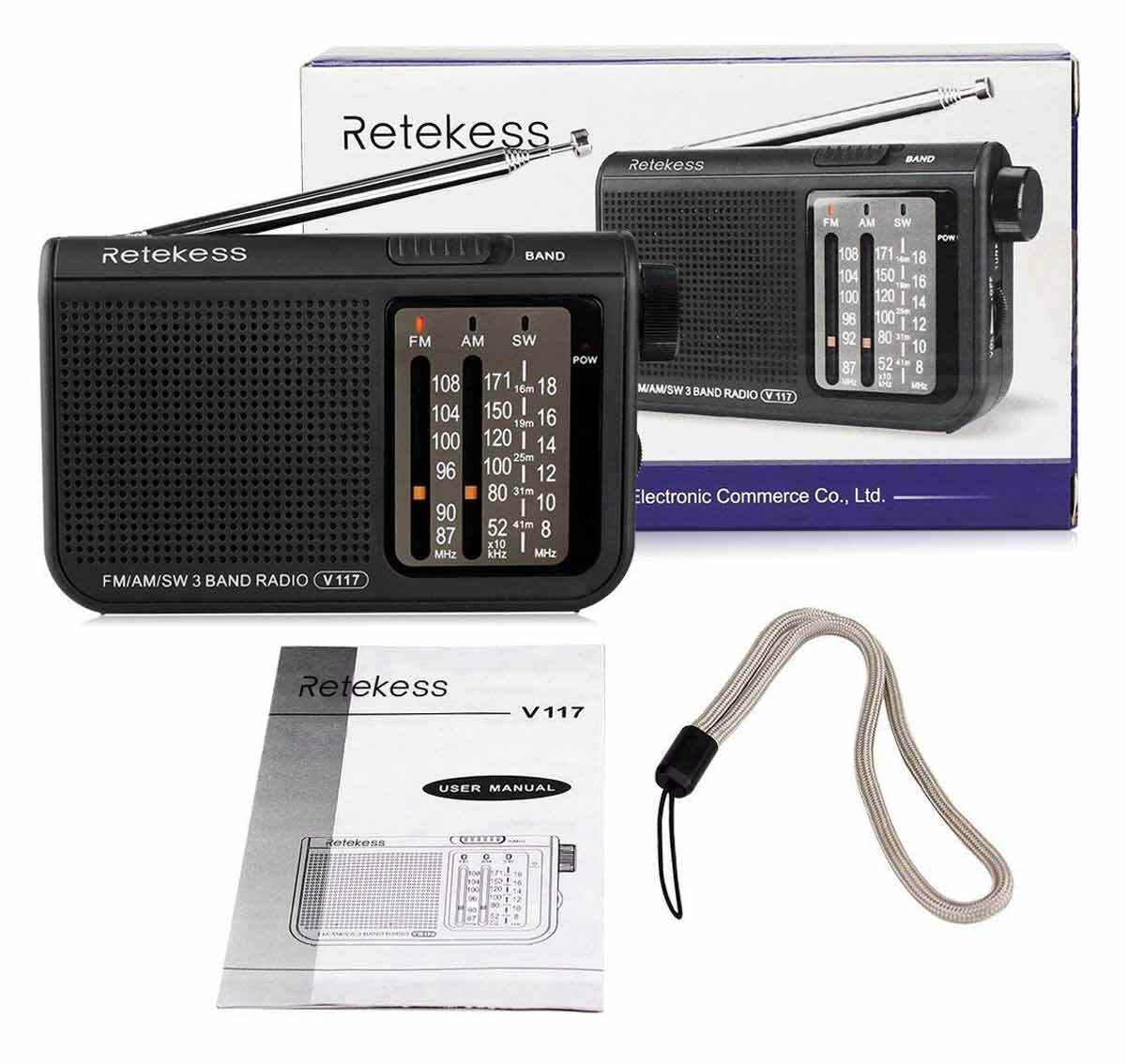 Цифровой карманный радиоприемник Retekess V117 весом 132 г и размером 126*75*26 мм предназначен для приема в диапазонах: средние волны (MW) – 522-1620 кГц, короткие (SW) – 8.0-18.0 МГц и ультракороткие (FM) – 87-108 МГц.Приемник питается от двух батареек