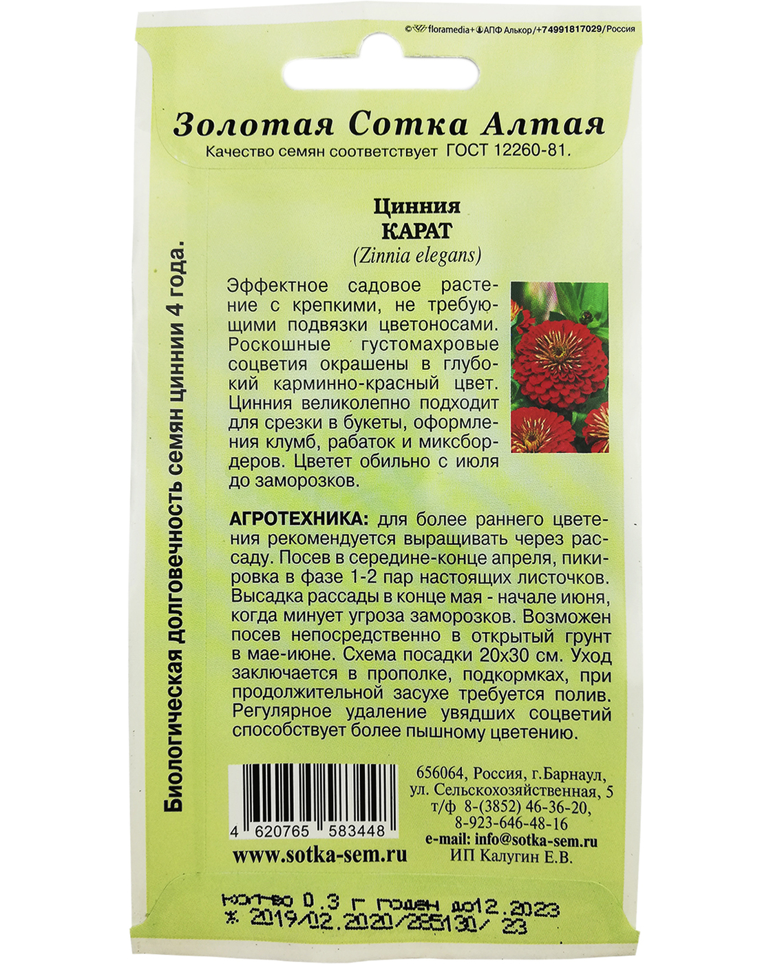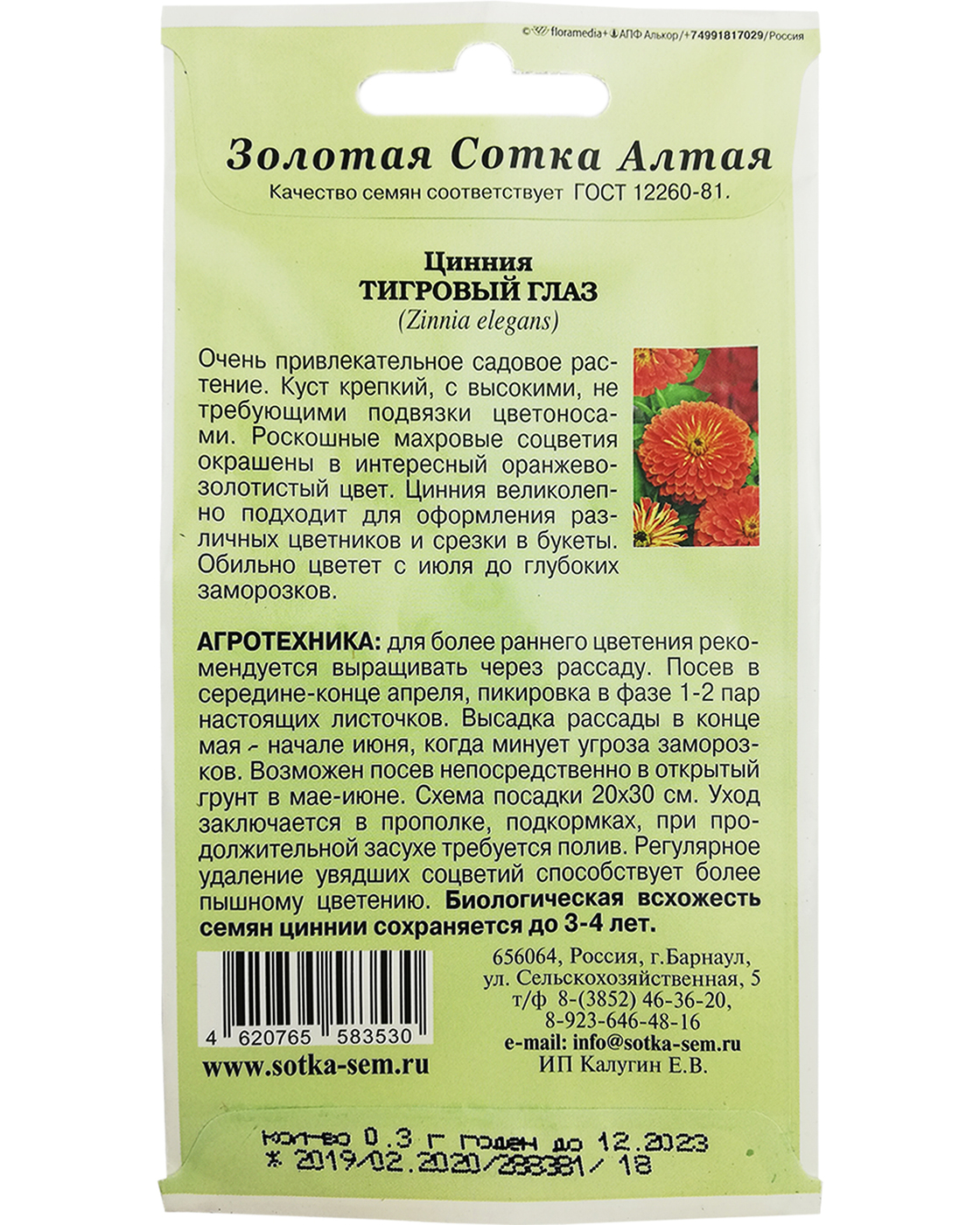 Комплектация:Цинния Карат 0,3 г 1 штцинния Тигровый глаз 0,3 г 1 штОписание:Эффектное садовое растение с крепкими не требующими подвязки цветоносами. Роскошные махровые соцветия. Цинния великолепно подходит для оформления различных цветников и срезки в бу