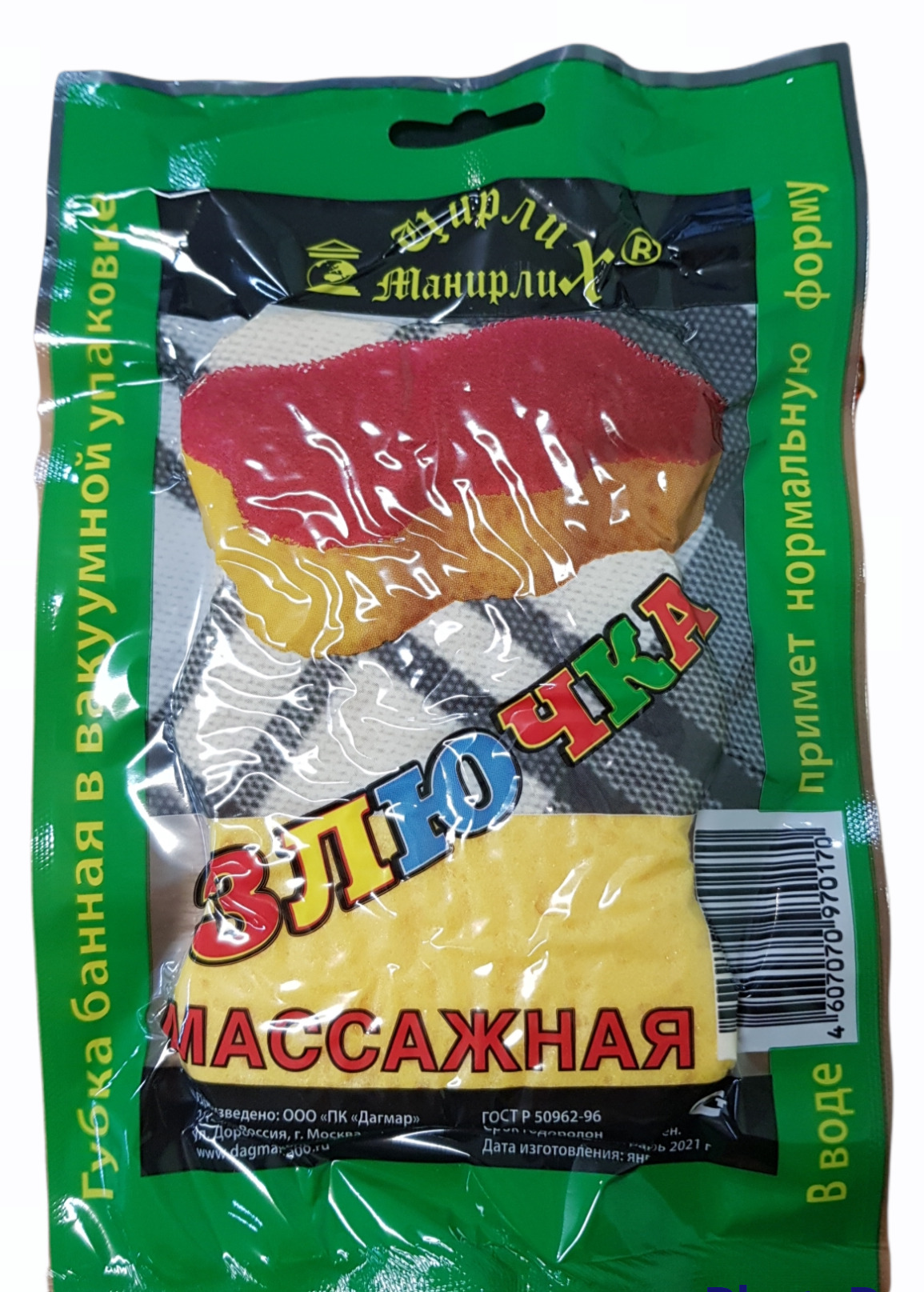 Комплектация:Губка банная массажная "Злючка" 1 шт;Губка банная антицелюлитная "Шкуродер" - 1шт.Описание:Губка для тела в вакуумной упаковке. Обладает массажным эффектом, имеет удобную форму, приятная на ощупь. Хорошо пенится, отлично моет тело и дает заря