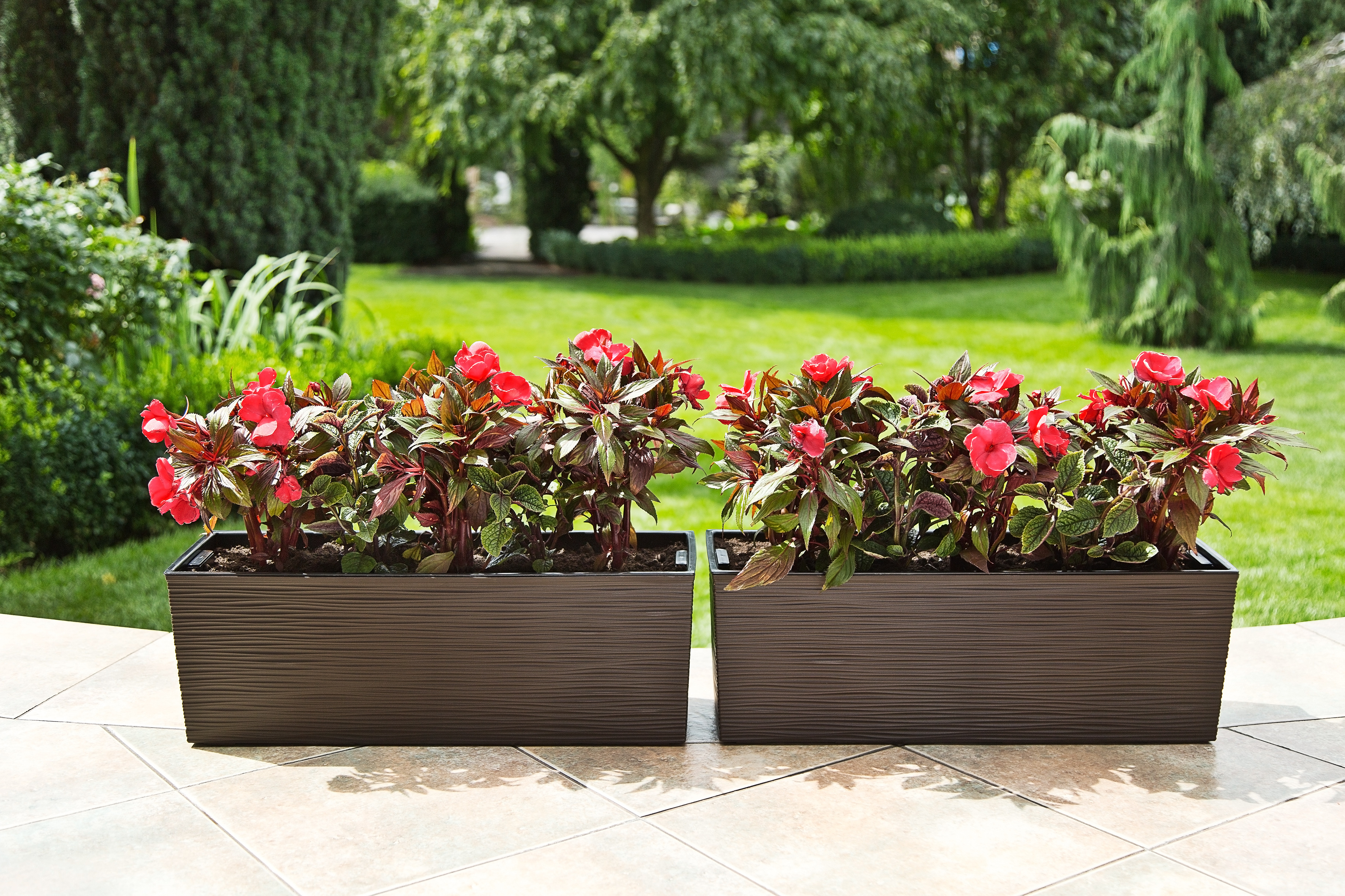 Комплектация:1 балконный ящик с вкладкой 56х19х19 смОписание:Цветник (балконный ящик) для цветов с вкладкой премиум BEGONIA Бегония Джуто имеет стильную форму и необычную текстуру поверхности, фактурность которой делает кашпо самостоятельным интерьерным