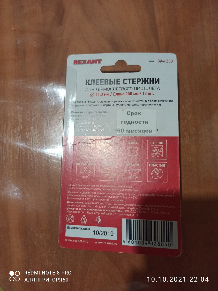 Комплектация:Клеевые стержни- 12шт., упаковкаОписание:Клеевой стержень предназначен для склеивания разных поверхностей в любом сочетании (из дерева, пластмассы, картона, бумаги, металла, керамики и т. д). Для склеивания потребуется всего 40-60 секунд, пос
