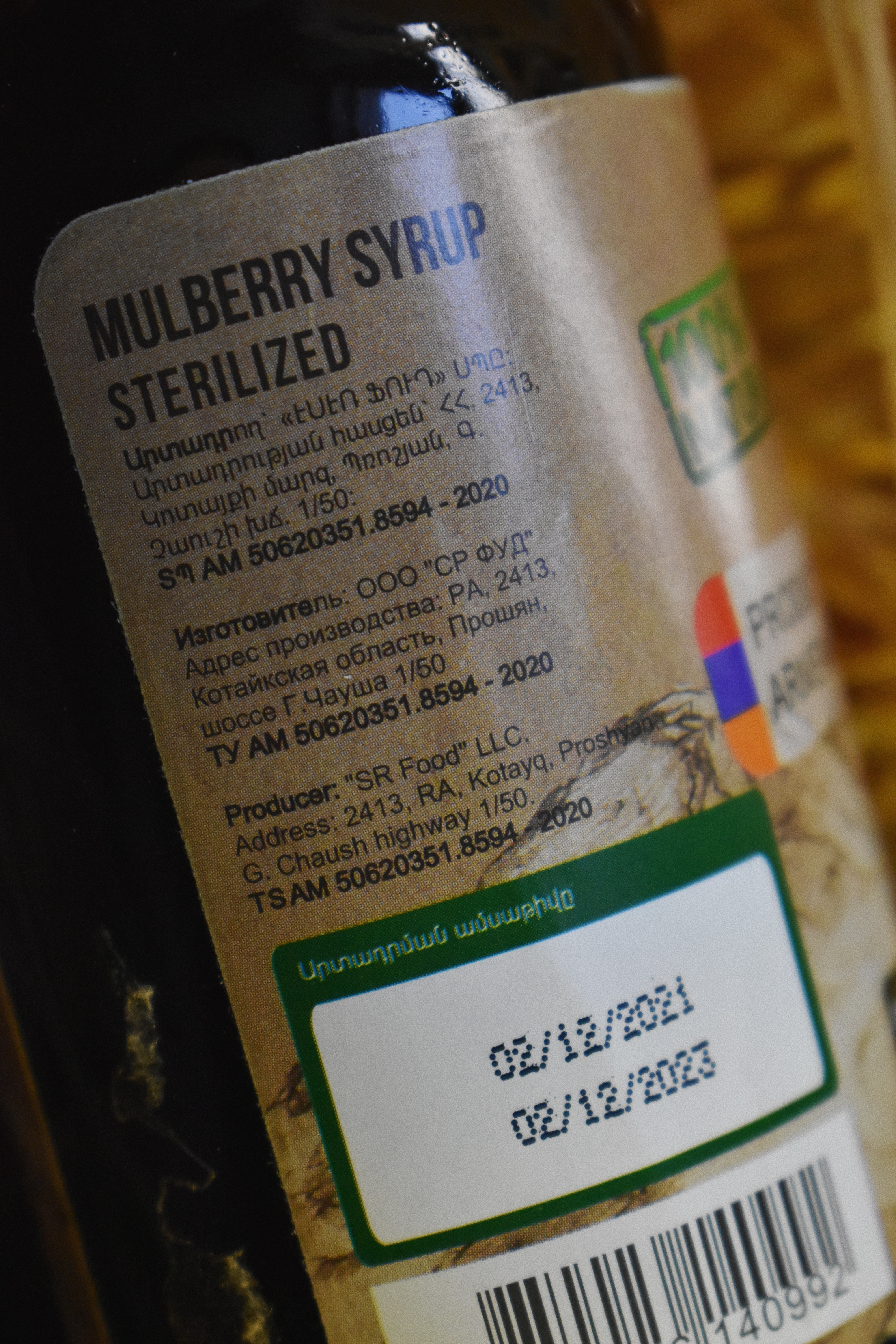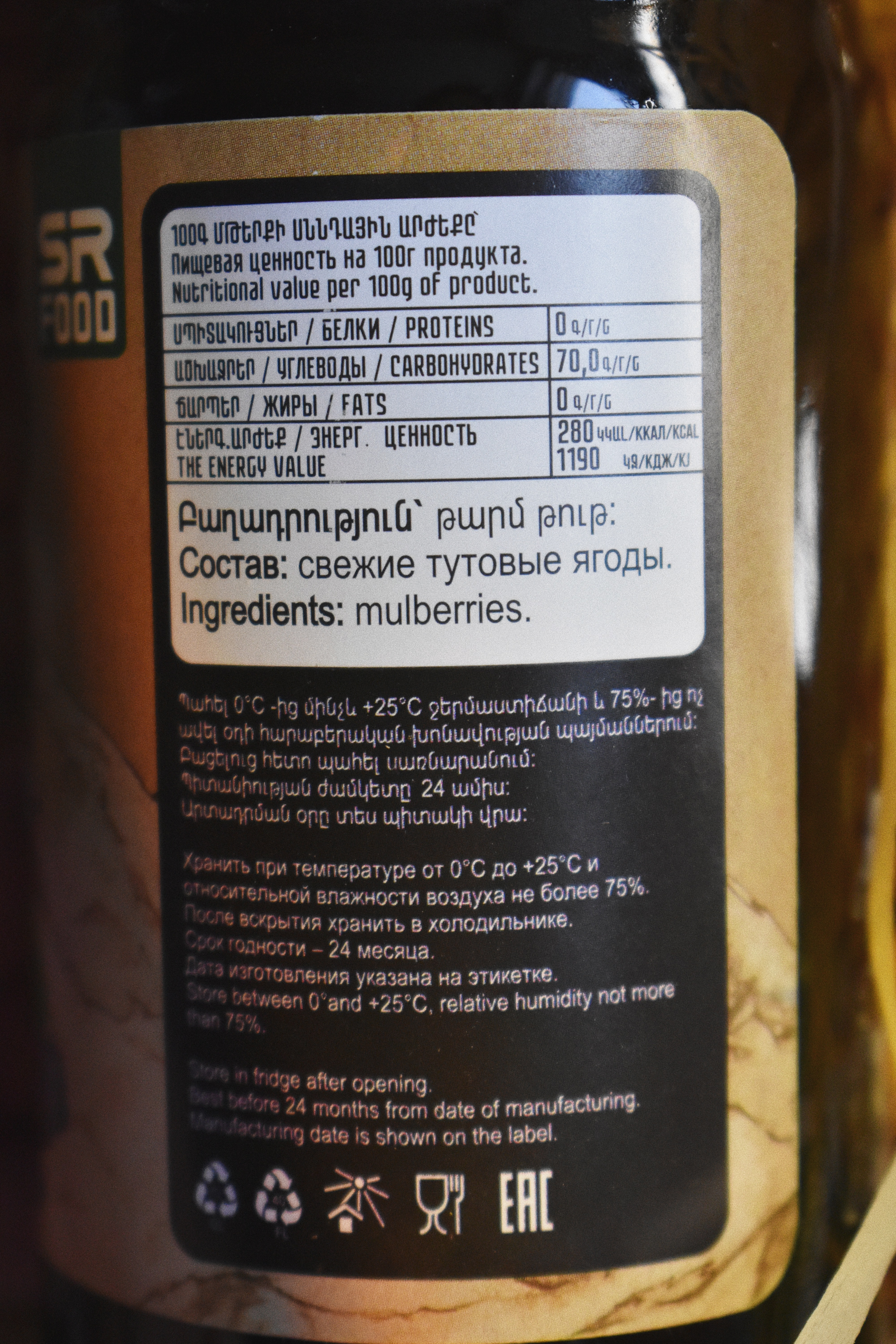 Условия хранения:Хранить при температуре от 0°C до +25°C и относительной влажности воздуха не более 75%.После вскрытия хранить в холодильнике.Состав:Свежие тутовые ягодыОписание:Дошаб представляет собой концентрированный ягодный сок, который получается по