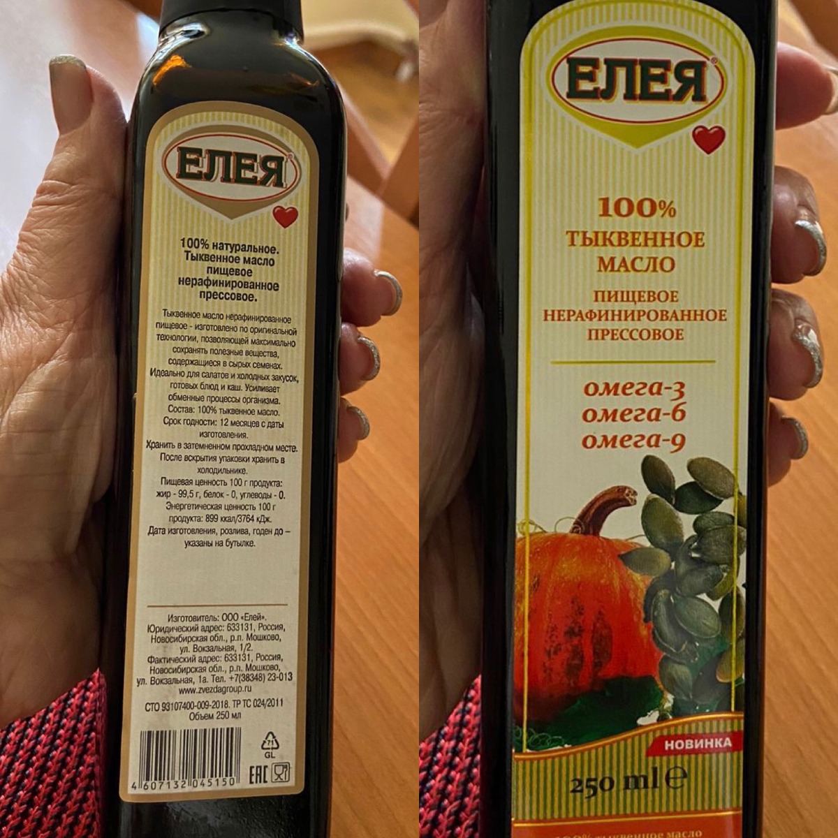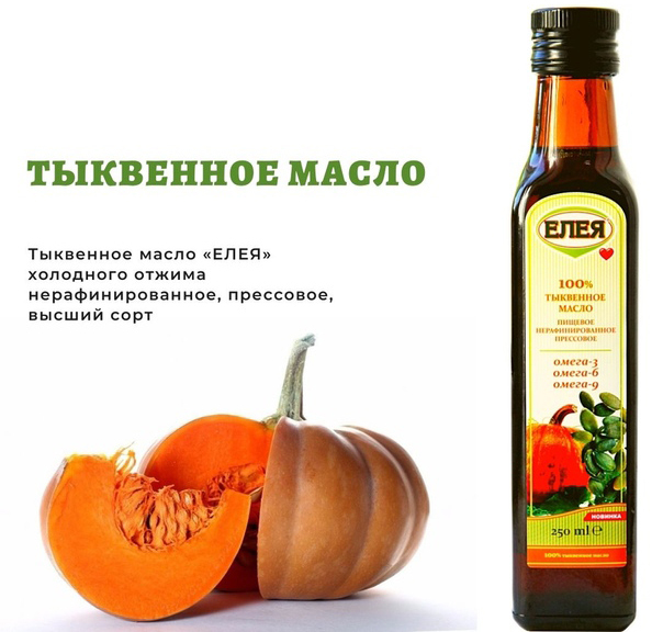 В этом масле отсутствуют углеводы и белки. Не содержится в нем и пуриновых оснований, что важно для людей, страдающих подагрой. Тыквенное масло является 100%-ным жиросодержащим продуктом. В него входят жирные кислоты (ЖК), среди которых преобладают омега-