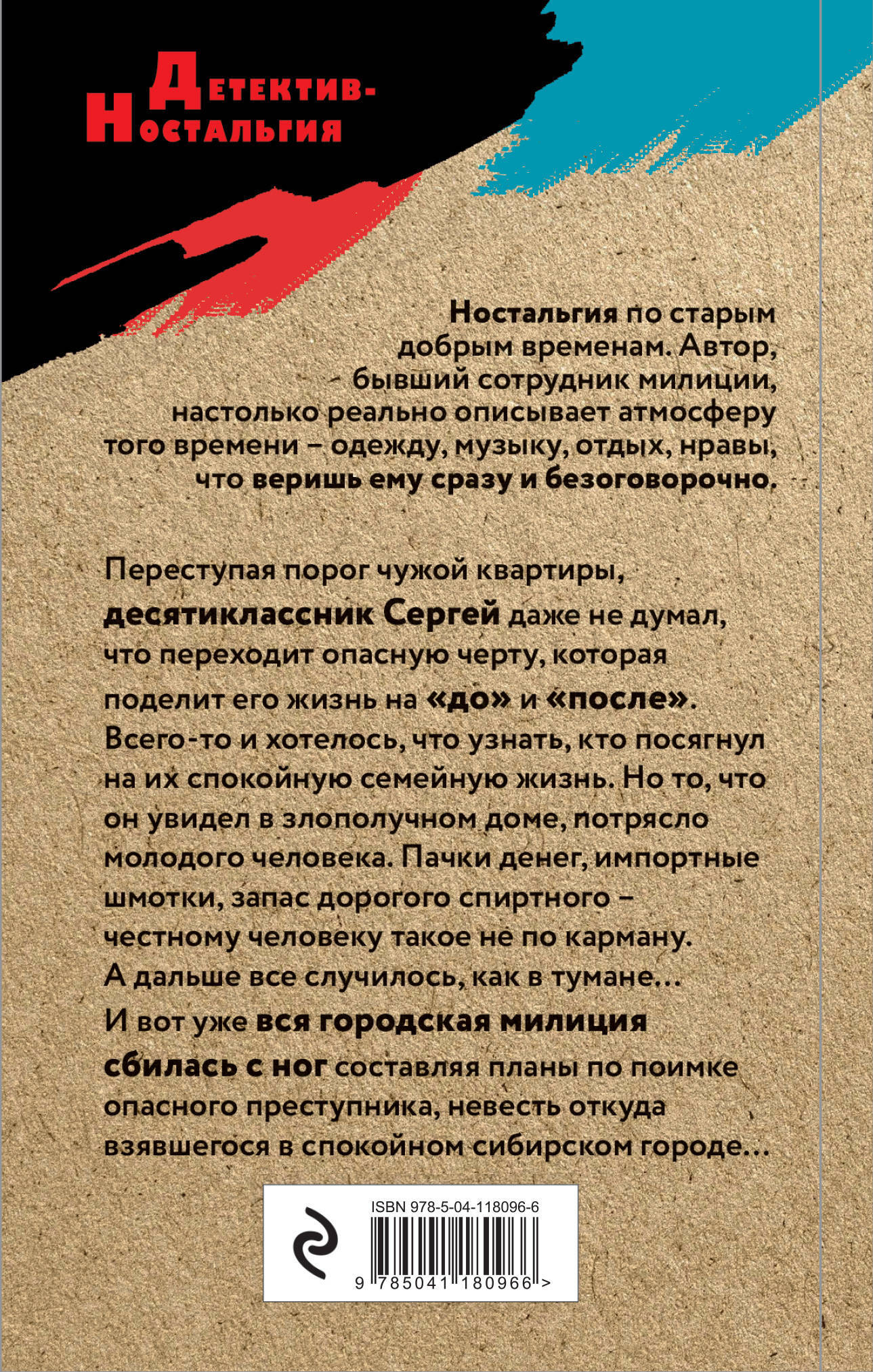 Ностальгия по старым добрым временам. Автор, бывший сотрудник милиции, настолько реально описывает атмосферу того времени — одежду, музыку, отдых, нравы, что веришь ему сразу и безоговорочно. Переступая порог чужой квартиры, десятиклассник Сергей даже не
