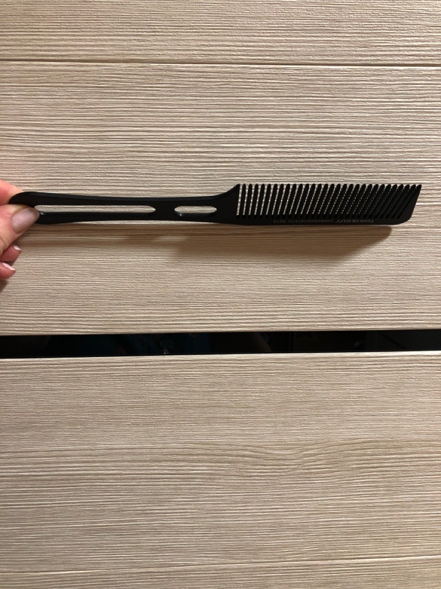 Длина — 22 см.Ширина — 4 см.Высота — 0,3 см.Вес — 13 г. Преимущества:— долговечный материал, который не царапает кожу головы и не травмирует волосы;— закругленные края и зубцы для вашей безопасности;— термостойкость;— антистатический эффект;.— совместимо