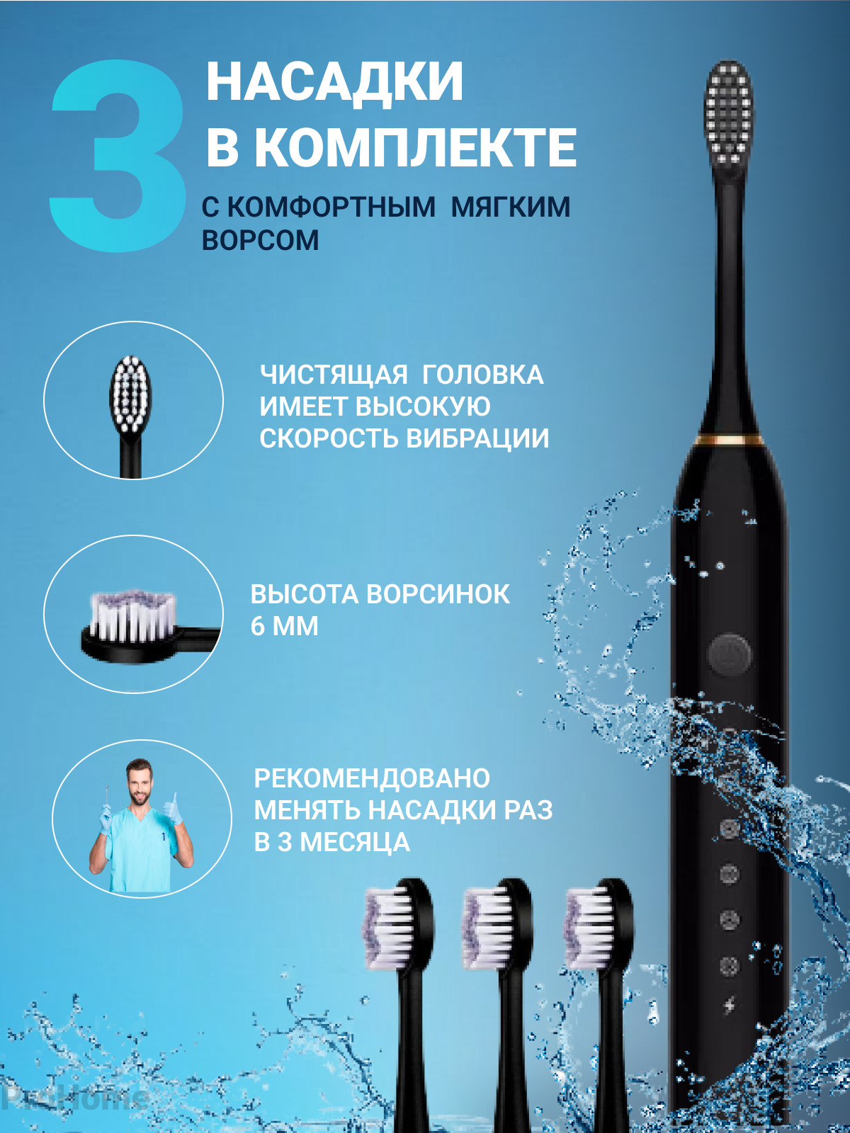 Комплектация:Щетка, насадка 3 шт, кабель питания USB, коробкаЭлектрическая зубная щетка черная с 3 насадками / Зубная щетка электрическая / Электронная зубная щетка / Электрическая зубная щетка / Электрическая щетка зубная / Щетки зубные электрические / З