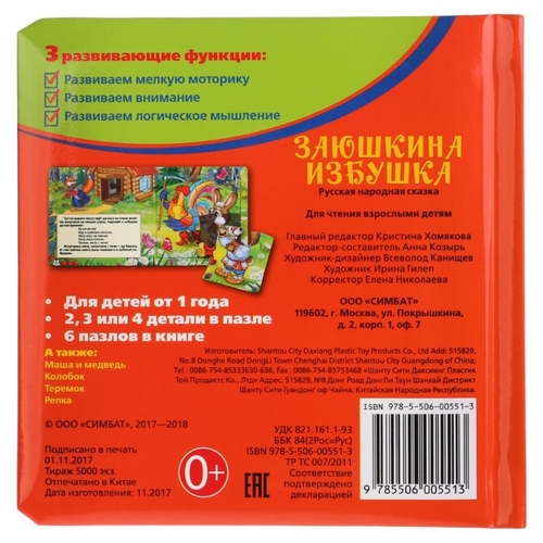 Дополнительная информация6 пазлов в книге; 2, 3 или 4 детали в пазле