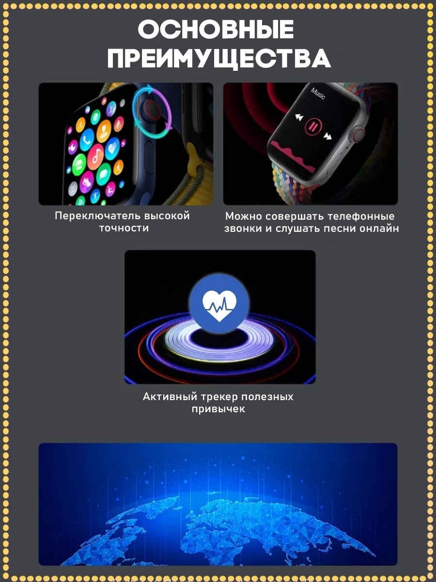Умные часы I7 Pro MAX Series 7 являются новинкой 2022 года с улучшенным динамиком и более быстрым процессором, они являются лучшим аналогом часов Apple Watch Series 7. Отзывчивый сенсор и качественная синхронизация со смартфонами на платформах Android или