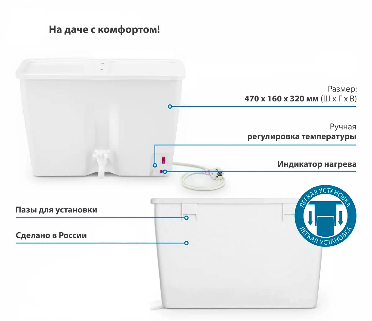 Наливной водонагреватель ЭлБэт ЭВБО-17 монтируется над раковиной, идеально подойдет для дачных домов и помещений, где отсутствует водоснабжение. Водонагреватель оснащен ручной регулировкой температуры и индикацией включения ТЭНа. Прост в работе, достаточн