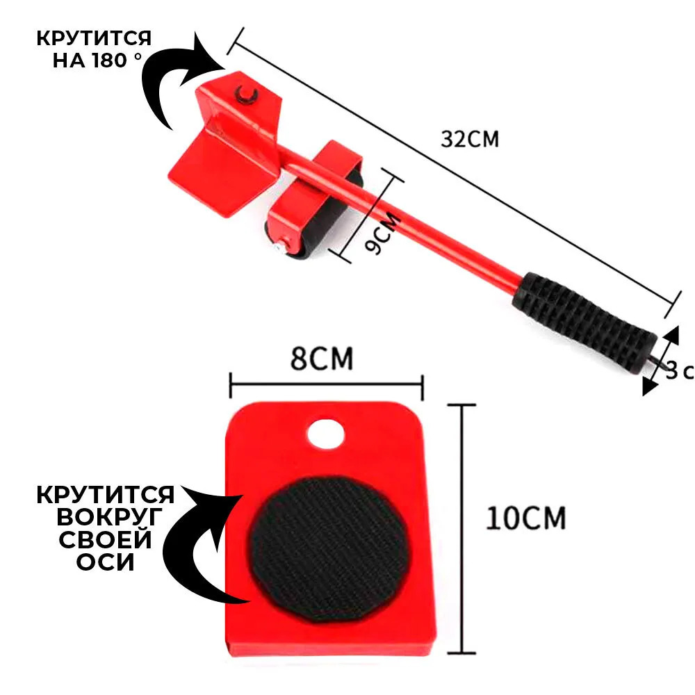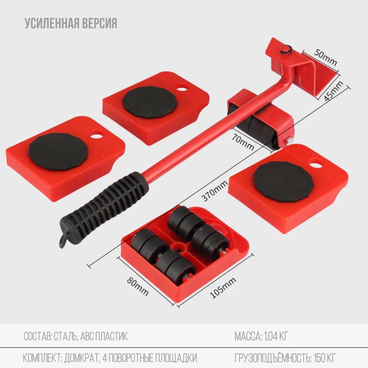 Домашний ручной домкрат. Набор Транспортёр предназначен для самостоятельной перестановки мебели. Вам понадобится лишь приподнять мебель с помощью рычага и подложить под каждый угол транспортную платформу с вращающимися колёсиками. После установки мебели н