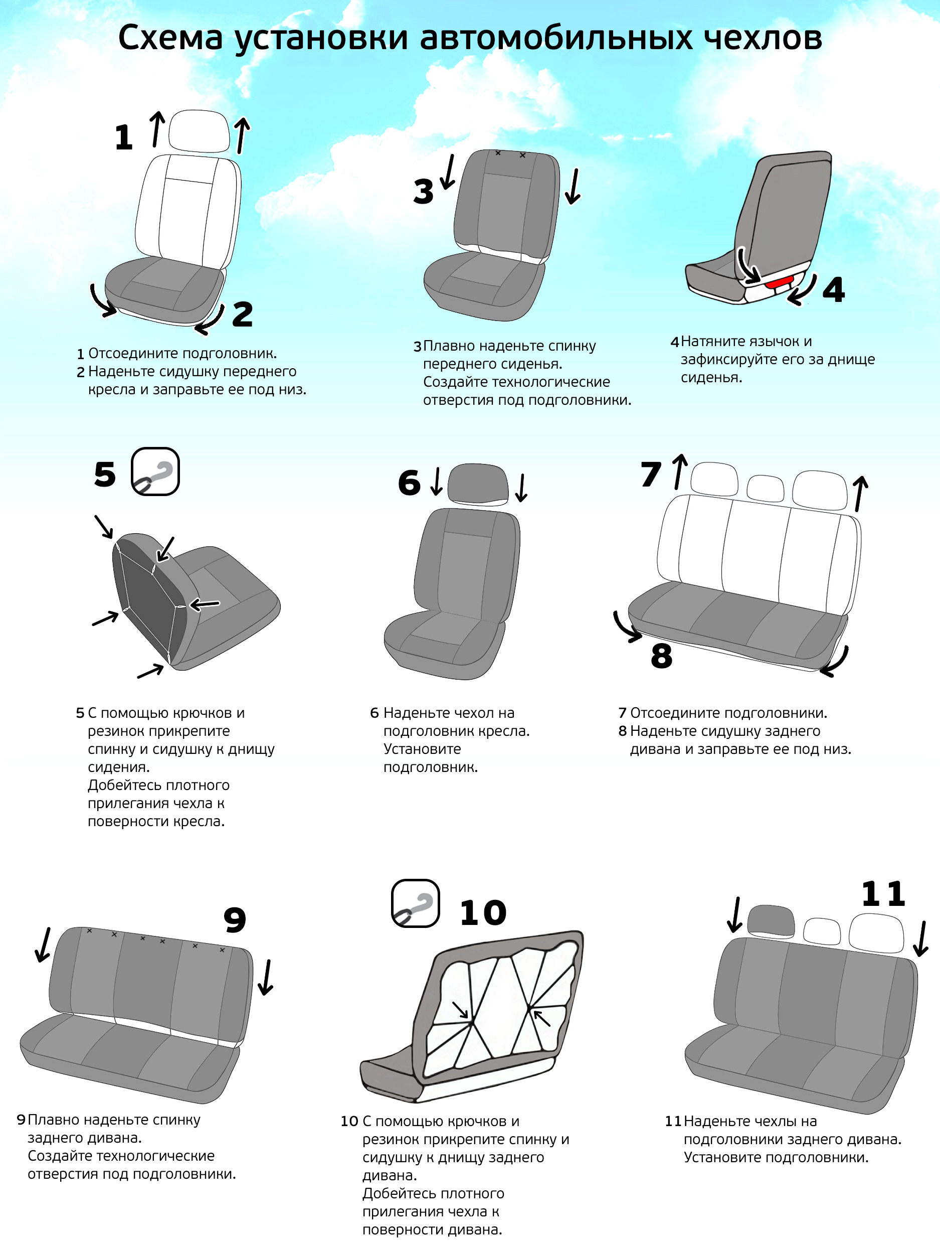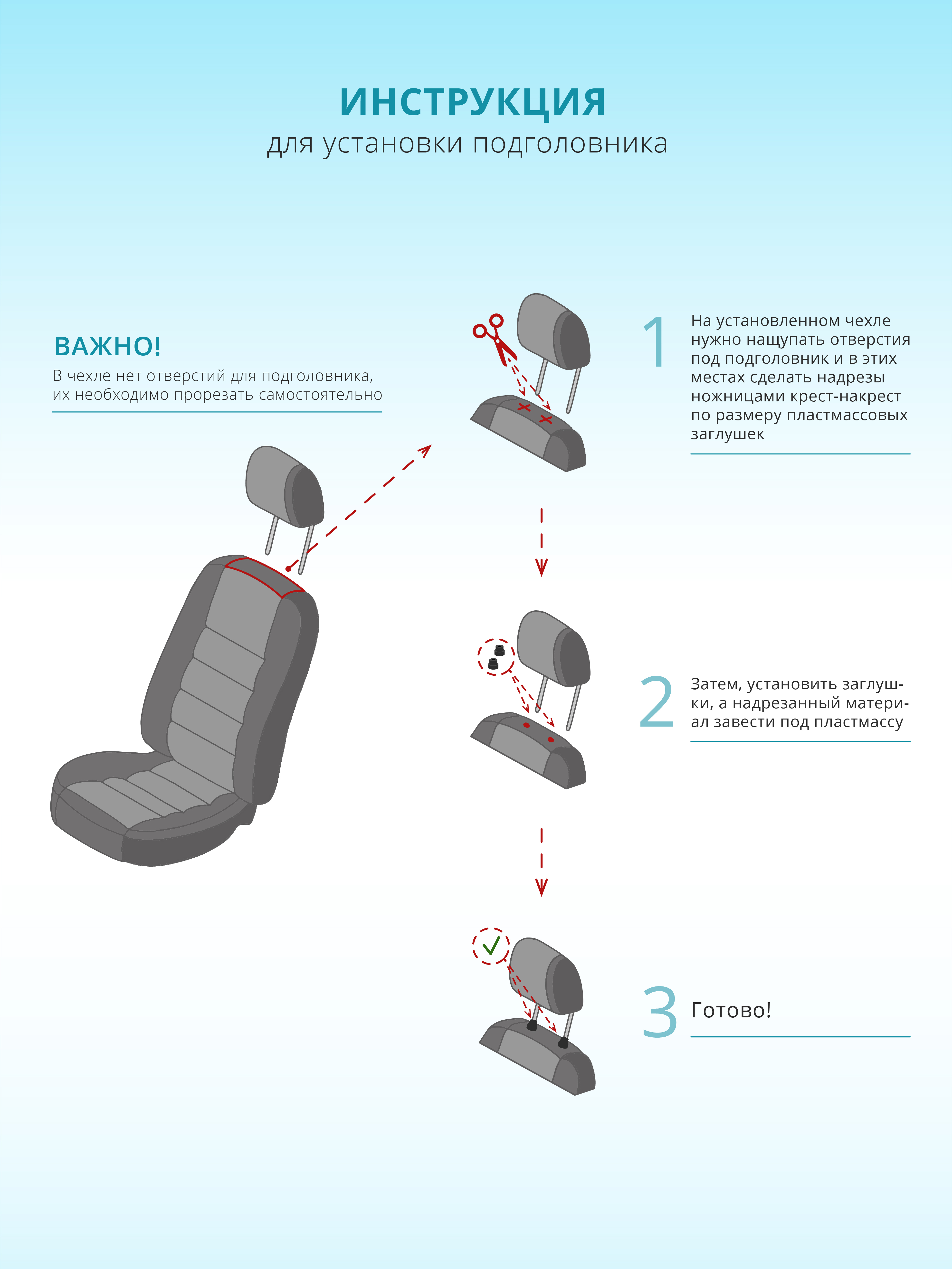 КомплектацияПодголовник, Сиденье заднего ряда, Сиденье переднего ряда, Спинка заднего ряда, Спинка переднего ряда, Чехол заднего ряда, Чехол переднего ряда