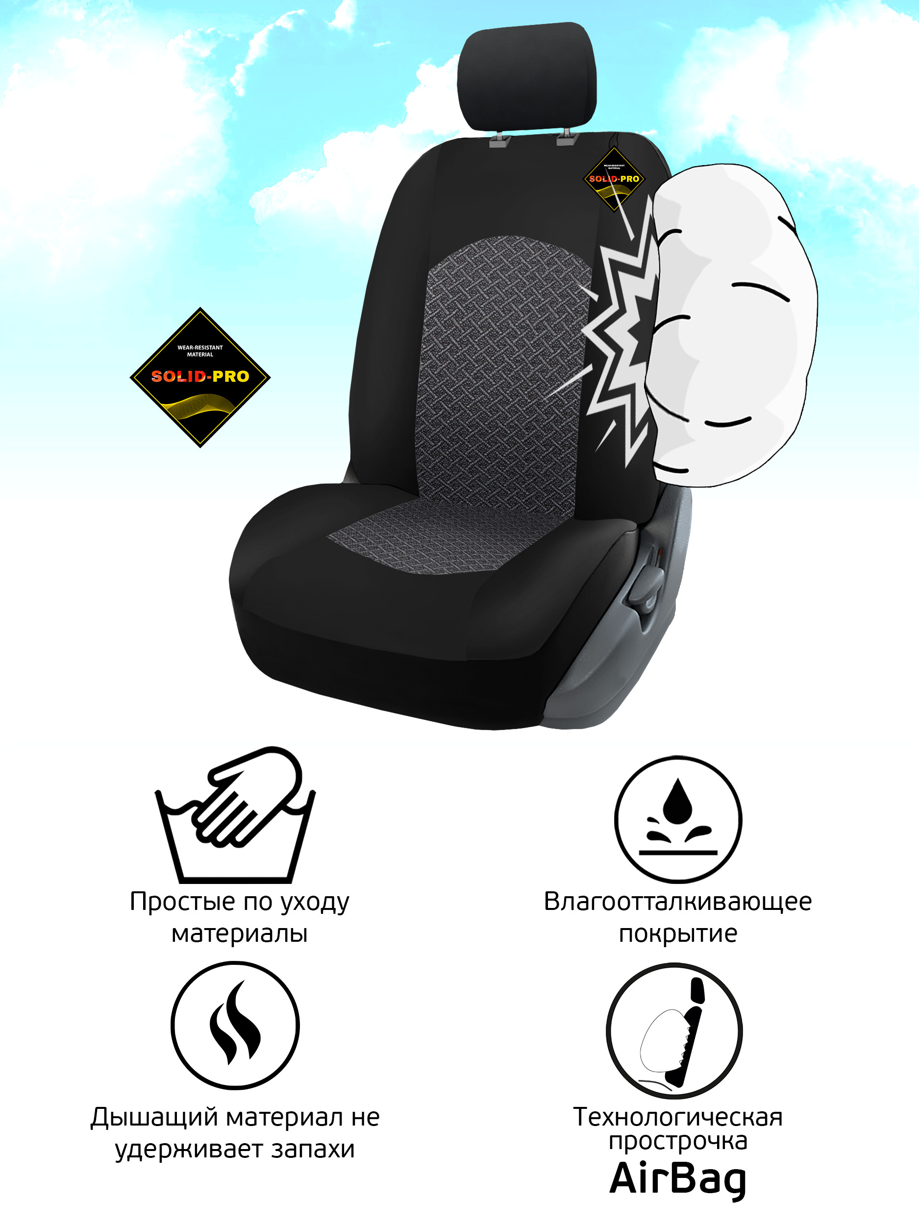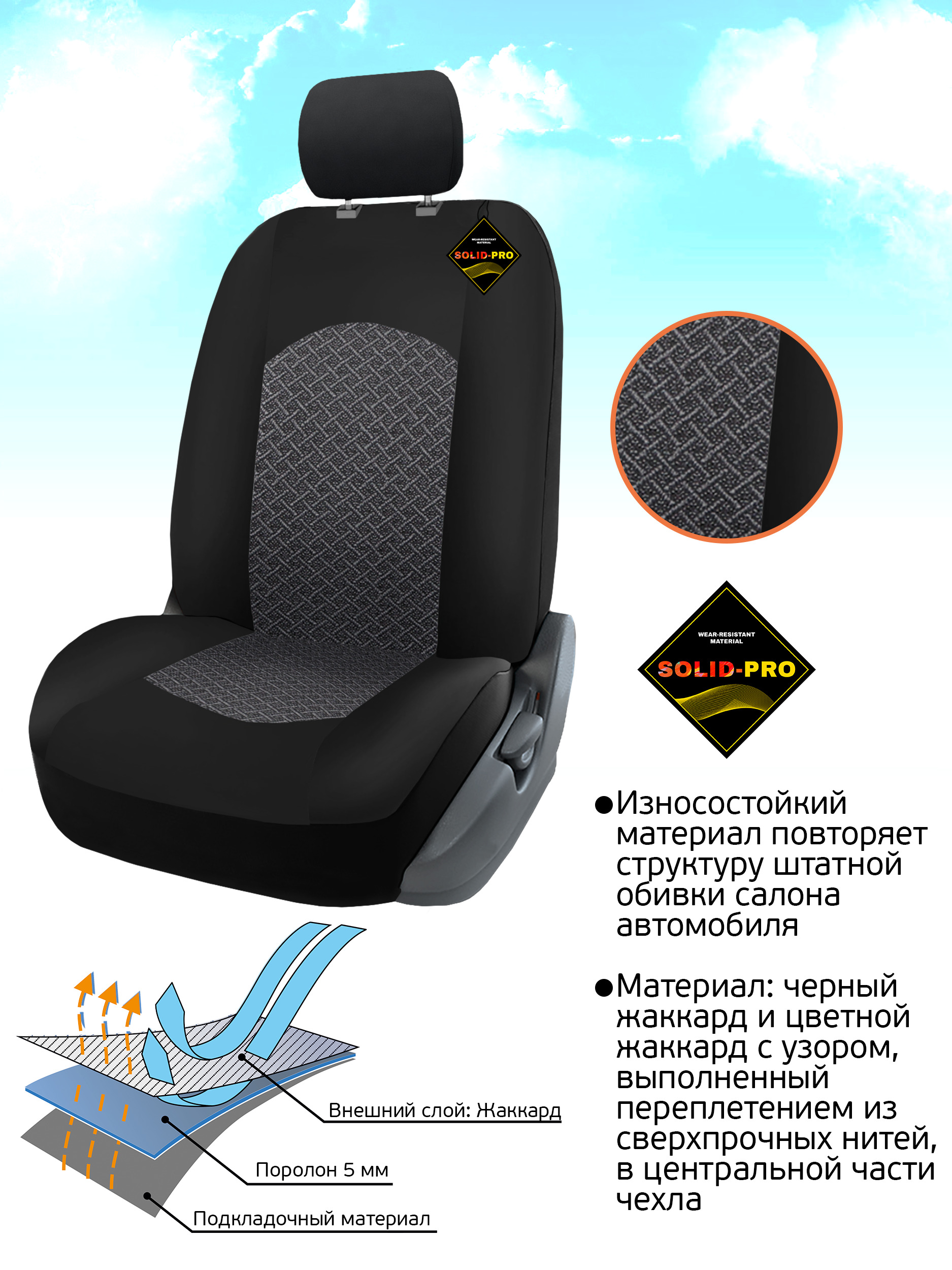 ОсобенностиКрепеж, Износоустойчивая ткань, Использование с боковыми airbag, Пятый подголовник в наличии, Фиксирующие резинки, Можно стирать в стиральной машине, Неэлектризующаяся ткань, Жаропрочный состав ткани, Вышивка